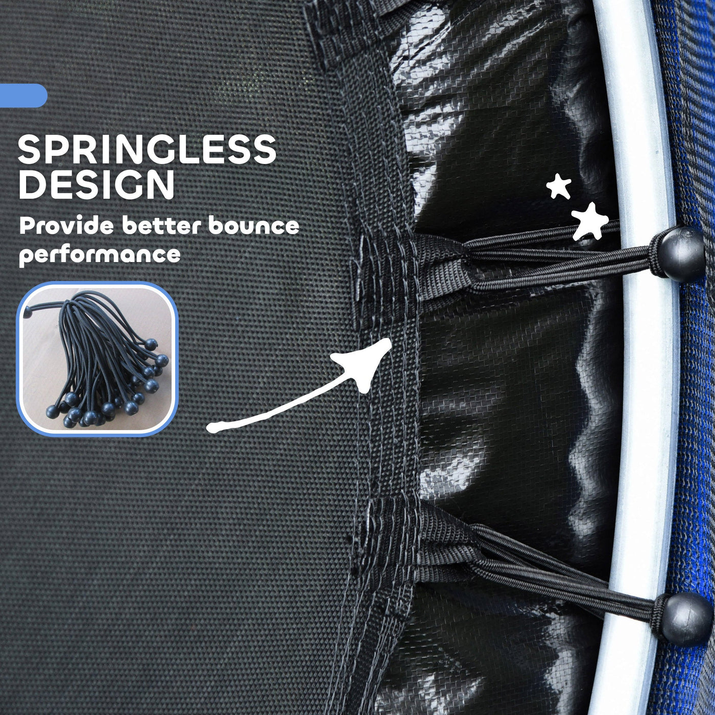 This HOMCOM trampoline provides endless fun – a great way to keep kids active. Made from steel, it's strong, stable and built to last, giving children daily entertainment. They'll bounce and play safely, thanks to the enclosed net and padded poles, which stop them from falling off, whilst its bungee design replaces traditional springs, which won't pierce through and cause injuries. It's a spacious play area - suitable for those who have lots of energy to burn.