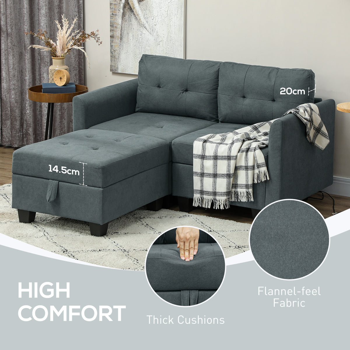 A sofa set, your way with this HOMCOM sofa set. The modular design allows you to build into the shape and size you want. Under each module there is storage space, providing convenient room for small furnishings and similar - it's easy to keep the area tidy day and night. Sink into this corner sofa thanks to the thick padding; this is a great companion for day and night use.
