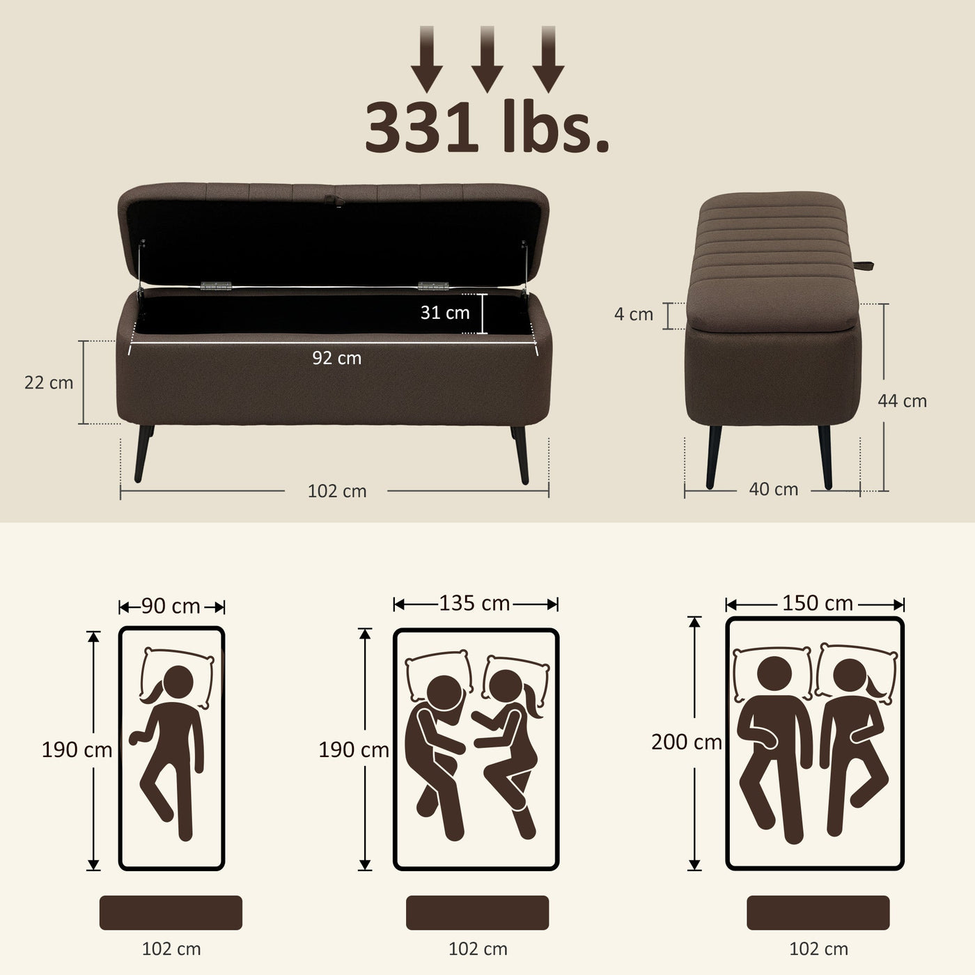 HOMCOM Linen-Look 92 x 31cm Storage Ottoman - Dark Brown - Dark brown