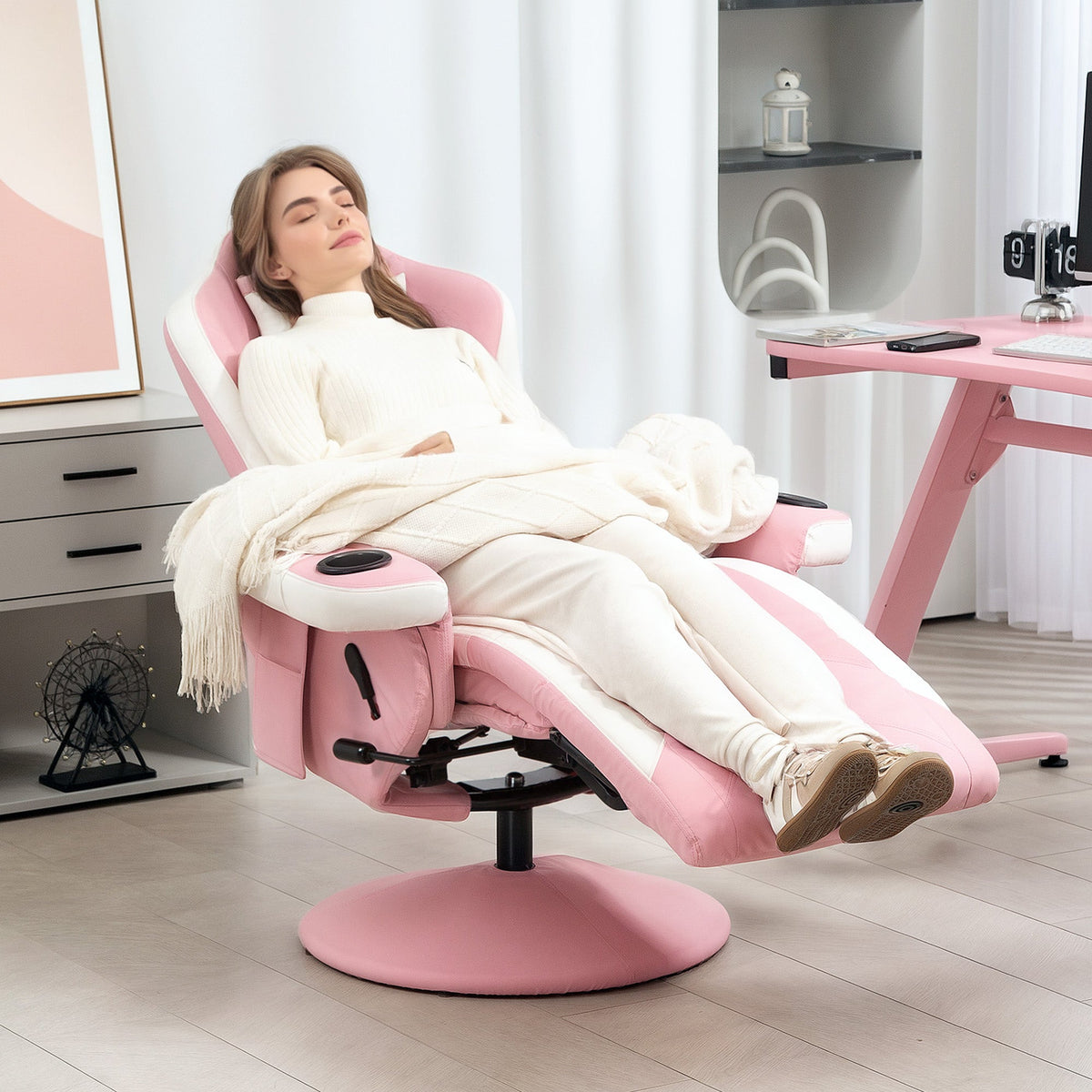 HOMCOM Manual Recliner Armchair PU Leather Lounge Chair w Adjustable Leg Rest, 135° Reclining Function, 360° Swivel, Pink - Pink