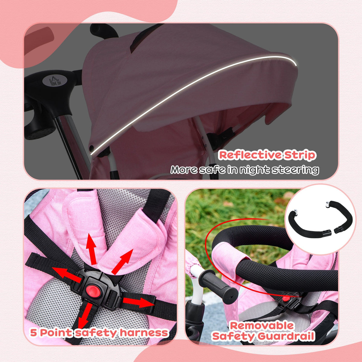 HOMCOM Metal Frame 6 in 1 Baby Push Tricycle with Parent Handle for 1-5 Years Old, Pink - Pink
