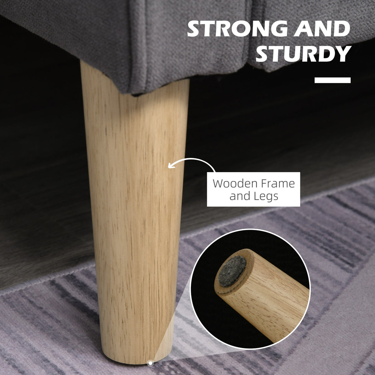 HOMCOM Modern 2 Seater Sofa with Hidden Storage, 117cm Tufted Cotton Couch with Wood Legs, Compact Loveseat for Living Room, Kitchen, Grey - Grey