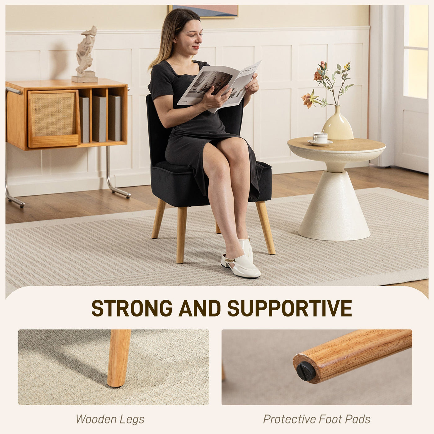 HOMCOM Modern Accent Chair, Fabric Living Room Chair with Rubber Wood Legs and Thick Padding, Black - Black