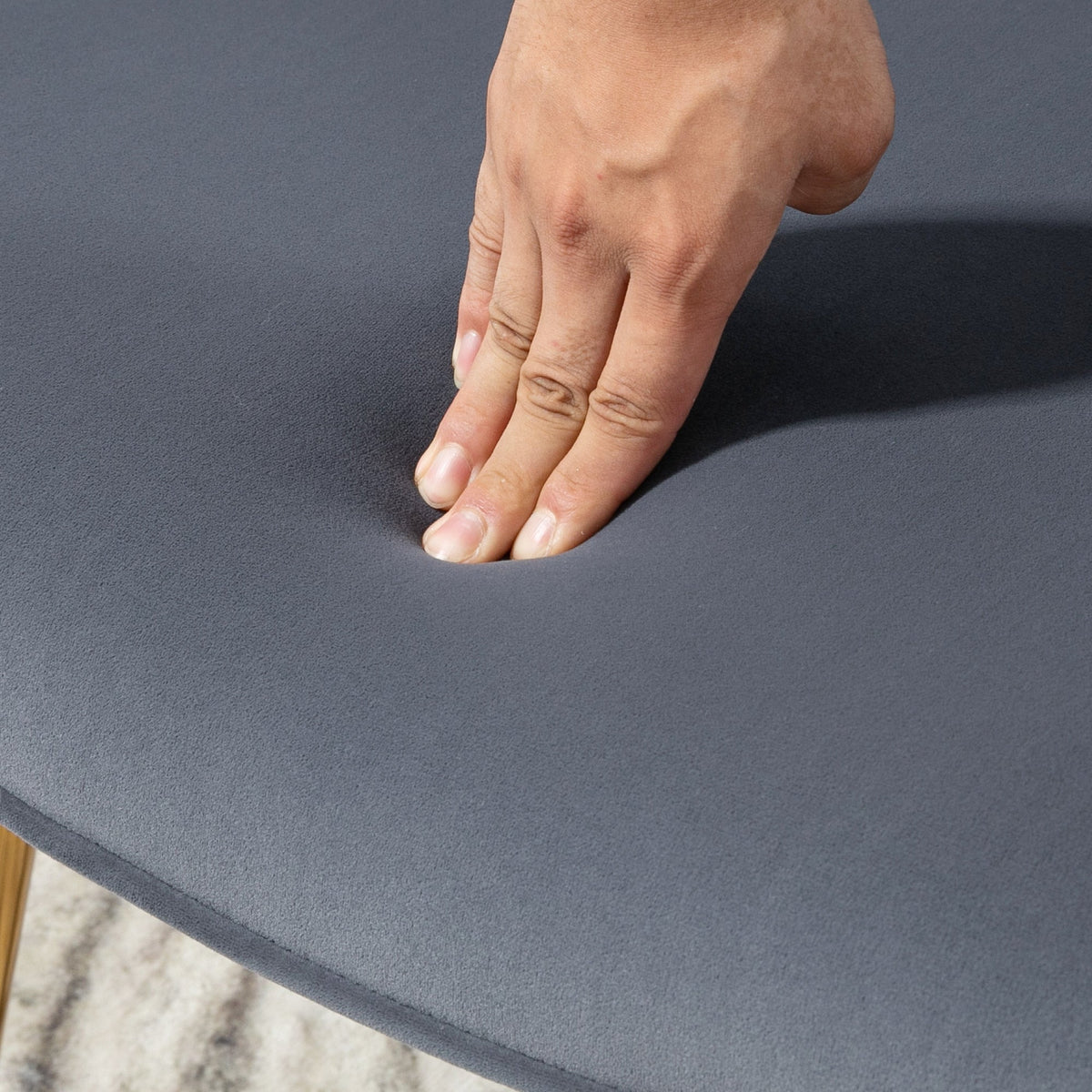 Double the comfort - double the style. This HOMCOM set comes with a large armchair and footstool, so you can relax your body and rest up your legs, all at the same time. In a relaxed and modern shape, the chair for bedroom gives you plenty of room to lay back into, with a padded seat for comfort and high back for support. Velvet-feel upholstery adds to the softness; paired with the gold coloured legs for luxe look. Complete with steel legs for strong support.