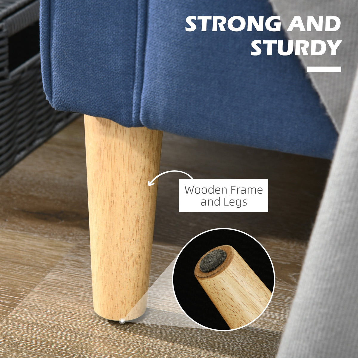 HOMCOM Modern Loveseat Sofa, Compact 2 Seater Sofa with Hidden Storage, 117cm Tufted Cotton Couch with Wood Legs, Blue - Blue