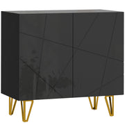 HOMCOM Modern Luxe High Gloss Sideboard, with Hairpin Legs - Black - Black