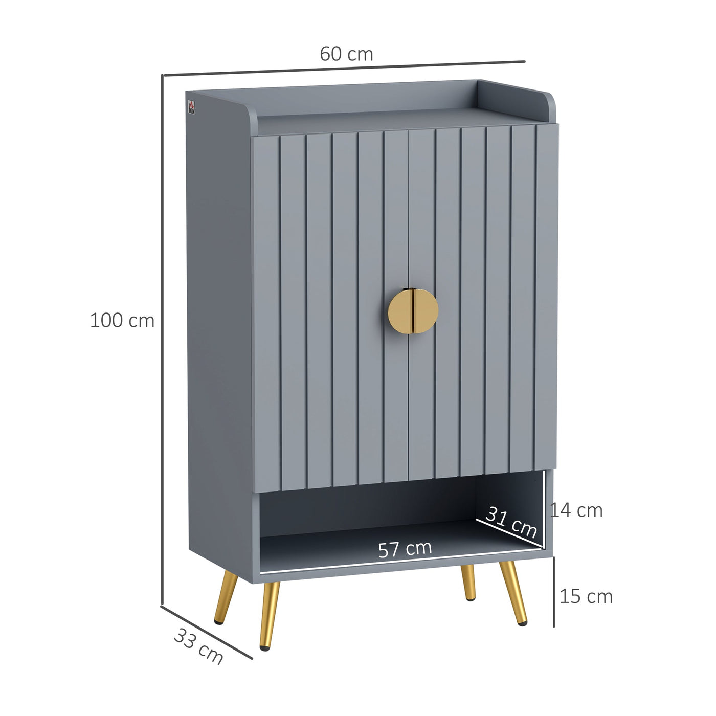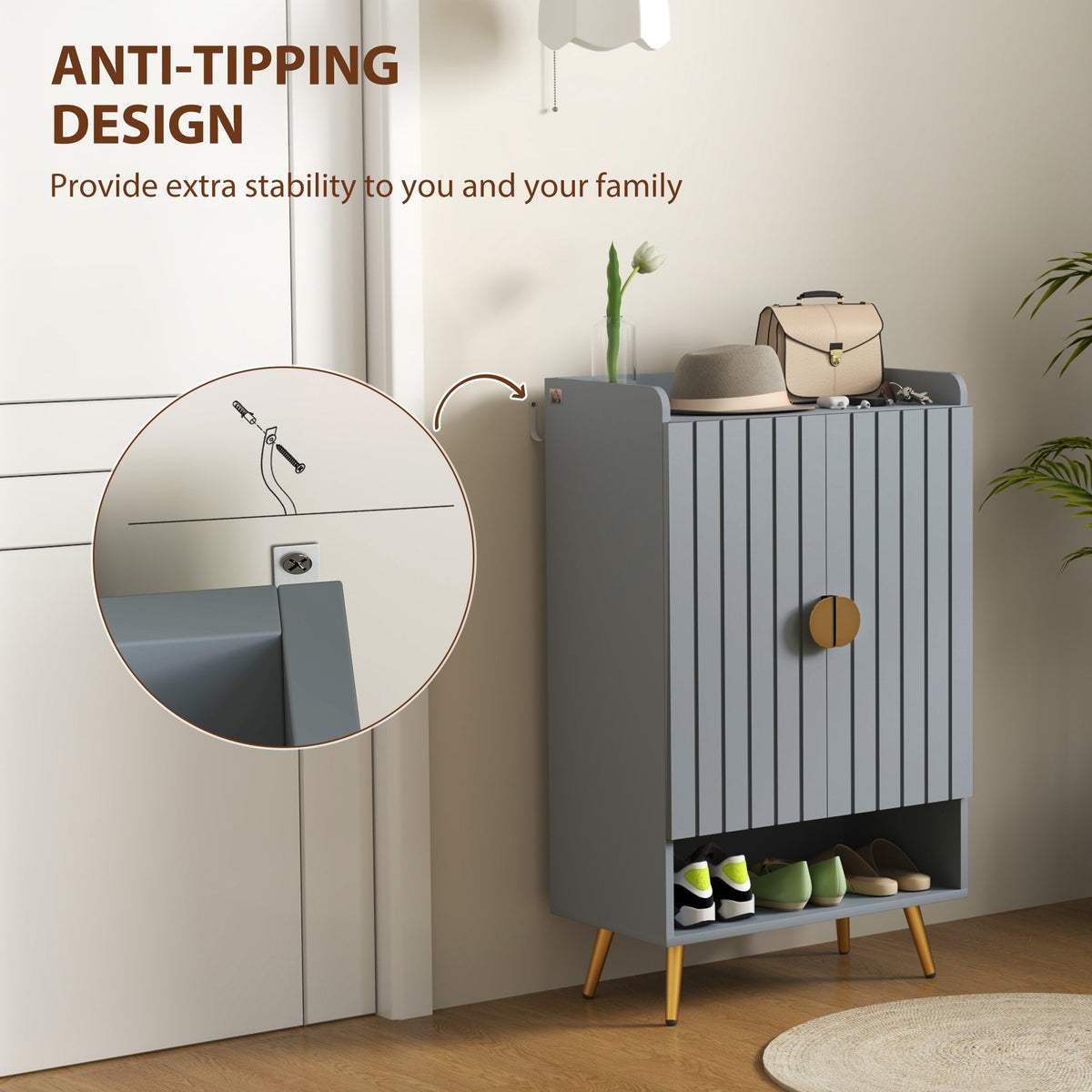 HOMCOM Modern Shoe Cabinet with 2 Doors, Open Shelf and Adjustable Shelves, 15 Pair Hallway Shoe Cupboard, Entryway Storage Unit, Light Grey - Light Grey