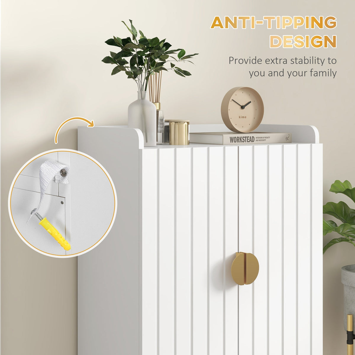 HOMCOM Modern Shoe Cabinet with 2 Doors, Open Shelf and Adjustable Shelves, 15 Pair Hallway Shoe Cupboard, Entryway Storage Unit, White - White