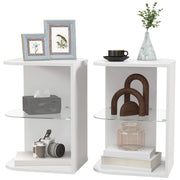 HOMCOM Modern Side Table Set of 2, Three Layer Bedside Table Nightstand with 2 Storage Shelves, for Living room, Bedroom, White - White