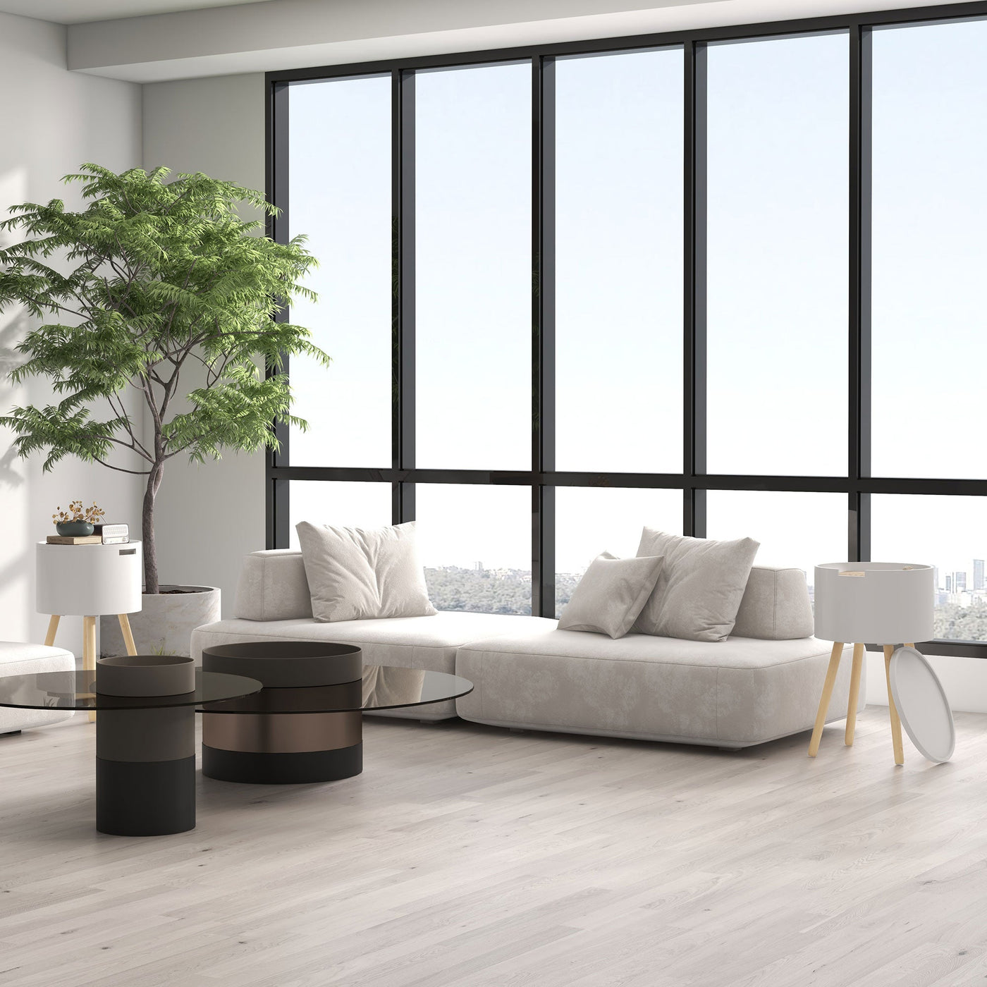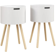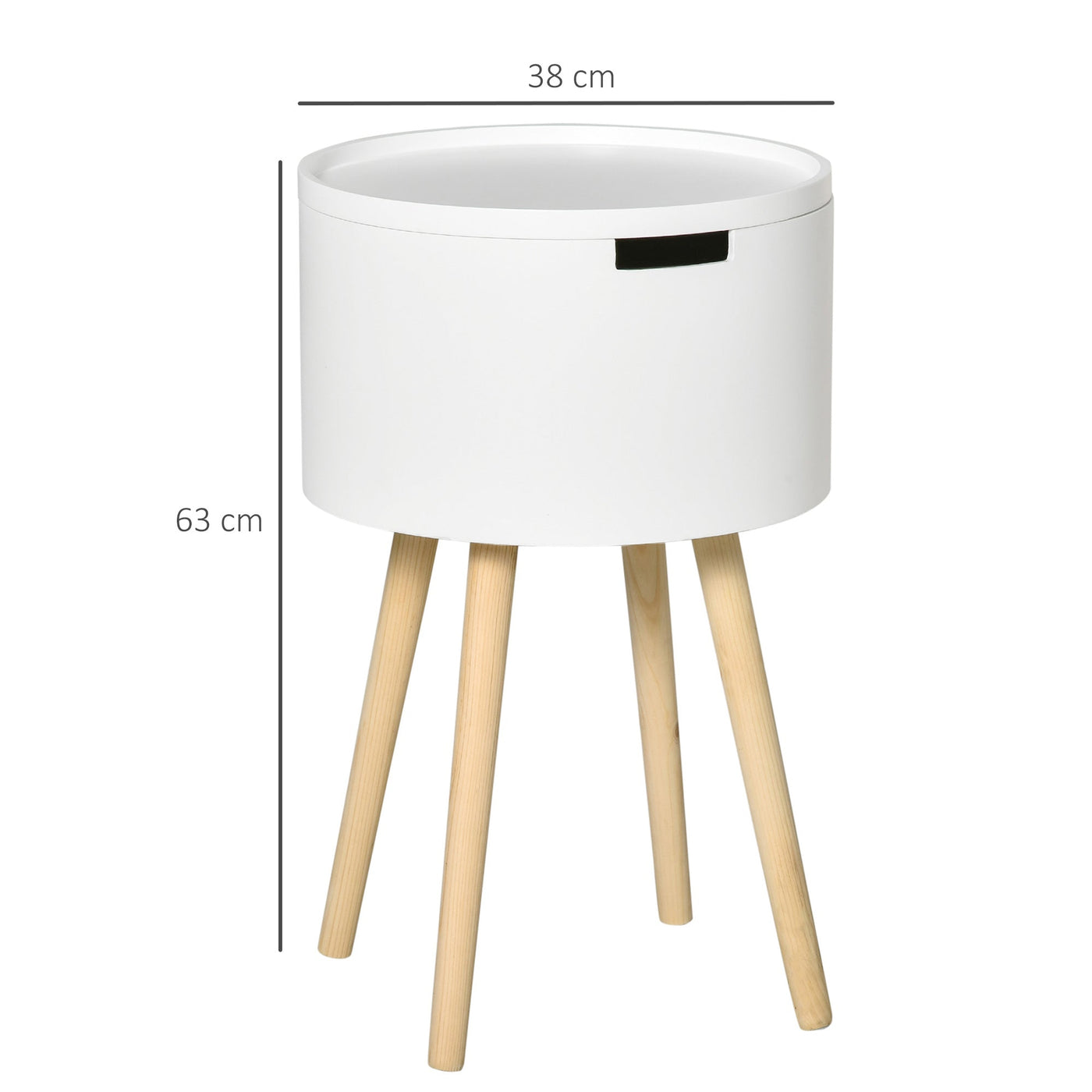 HOMCOM Modern Side Table with Hidden Storage Space, Round Night Stand with Removable Tray Wood Frame End Coffee Table for Living Room, Set of 2, White - White