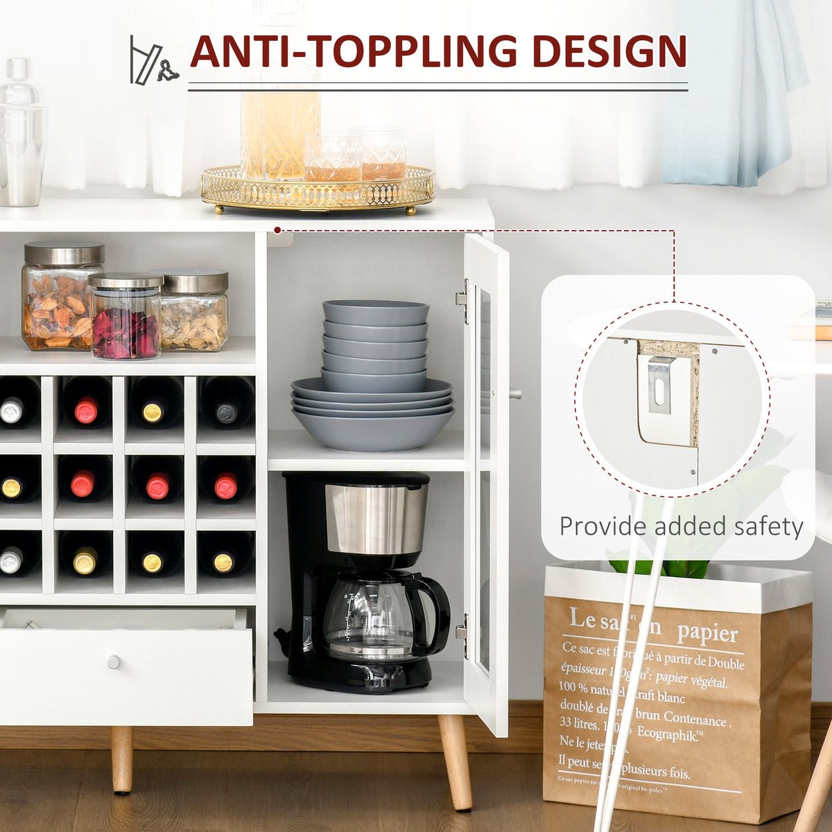 HOMCOM Modern Sideboard Storage Cabinet Kitchen Cupboard Dining Bar Server with Glass Doors, Drawer & 12-Bottle Wine Rack for Living Room, White - White