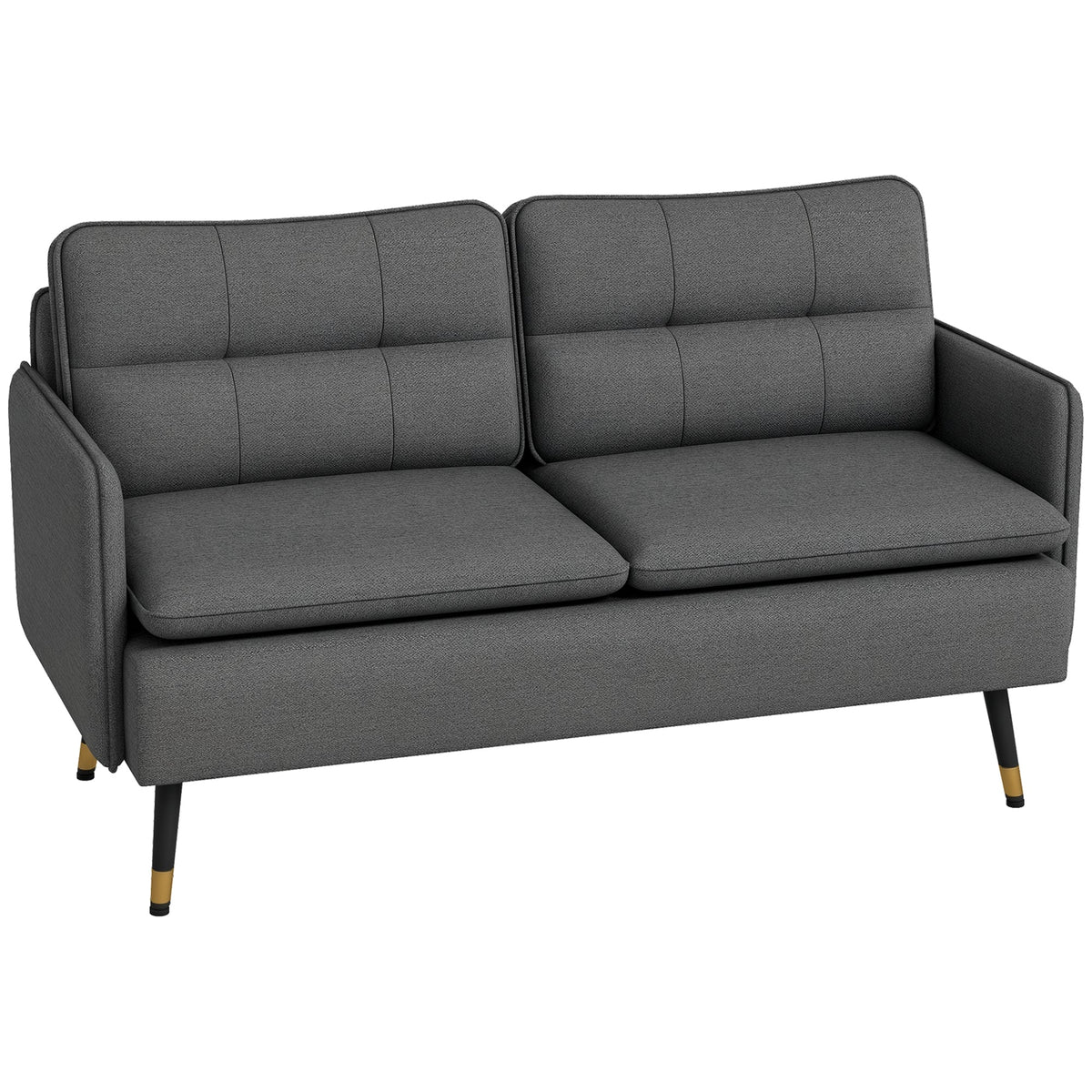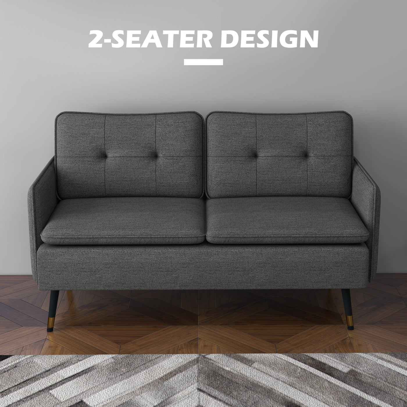 HOMCOM Modern Two Seater Sofa, Button Tufted Loveseat with Cushions and Steel Legs for Living Room, Guest Room, Dark Grey - Dark Grey
