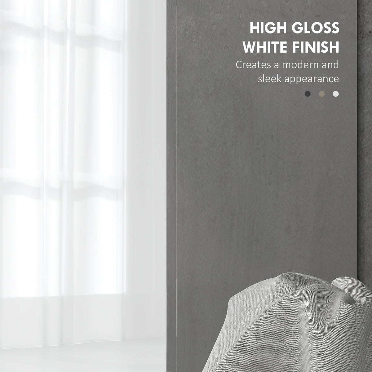 Maximise storage space with this HOMCOM bathroom sink cabinet. It has a 20 x 23 cm 'U' cut-out to fit under pedestal and non-pedestal basins. This under sink unit features an inner three-level adjustable shelf - plenty of room for bathroom essentials. Its high gloss white finish with a contrasting dark grey tabletop, black legs and handles adds a modern touch to every bathroom.