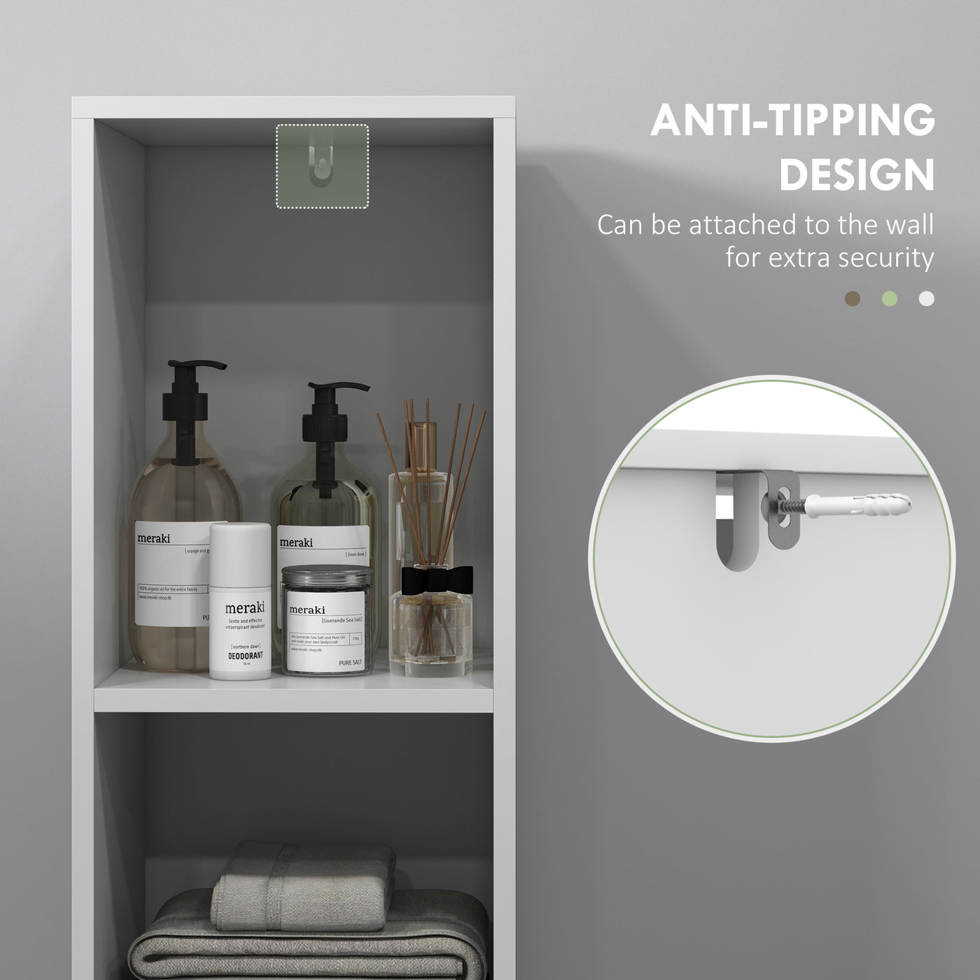 HOMCOM Narrow Bathroom Cabinet, Slim Bathroom Storage Unit with Open Compartment, Freestanding Storage Cupboard for Small Spaces, 30 x 30 x 160 cm, White - White