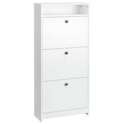 HOMCOM Narrow Shoe Cabinet with 3 Flip Doors, 14-18 Pairs Shoe Cupboard with Open Shelf for Slim Hallway and Entryway, 24 x 60 x 132 cm, White - White