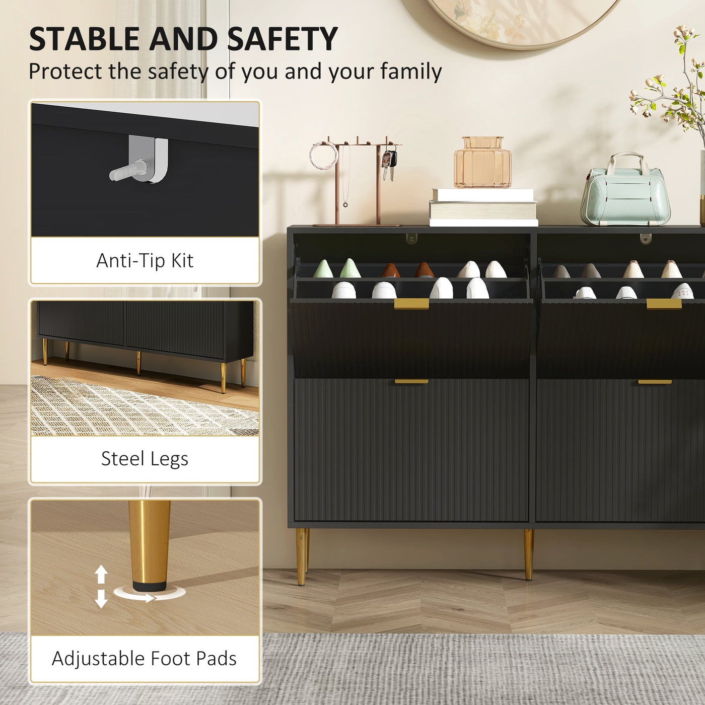 Transform your entryway with the HOMCOM shoe storage cabinet, featuring elegant fluted panel doors and gold tone handles that exude...