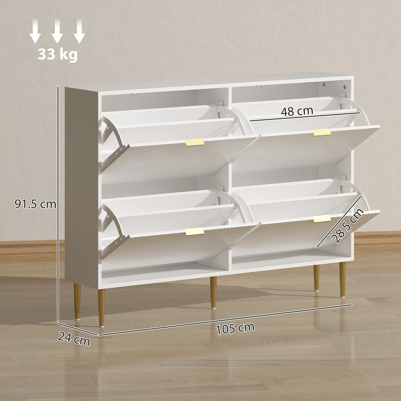 Transform your entryway with the HOMCOM shoe storage cabinet, featuring elegant fluted panel doors and gold tone handles that exude...