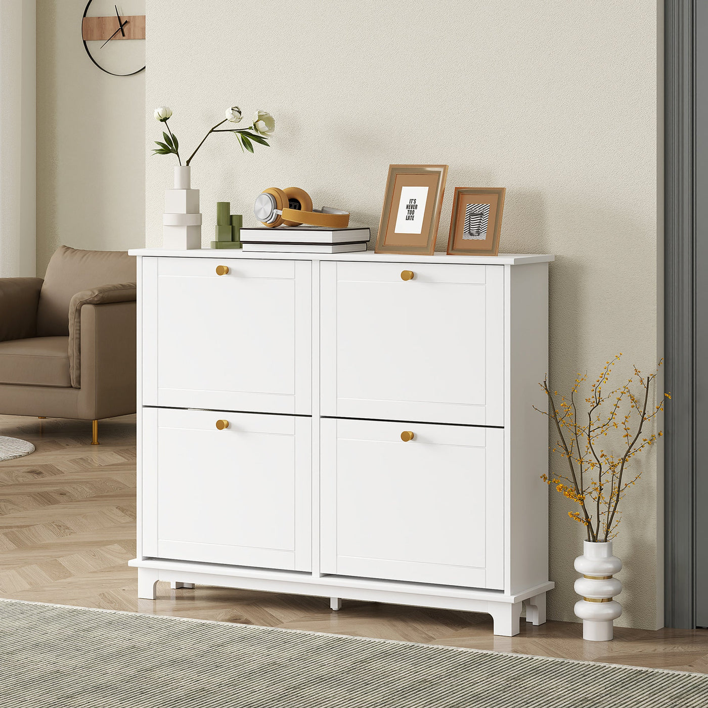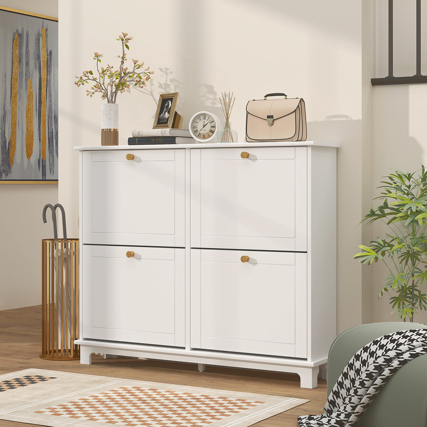 HOMCOM Narrow Shoe Storage Cabinet, Slim Shoe Cabinet with 4 Flip Drawers, Adjustable Shelves for 16 Pairs of Shoes, White - White