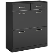 HOMCOM Narrow Shoe Storage with 2 Flip Drawers and Adjustable Shelves Shoe Cabinet Organizer for 12 Pairs of Shoes, Black - Black