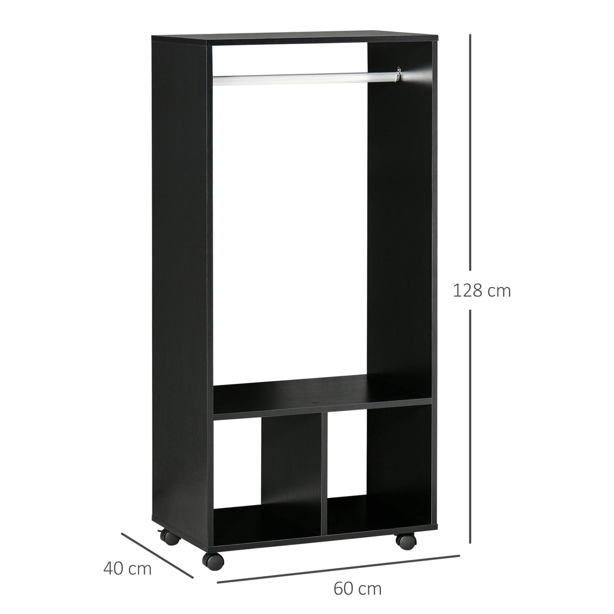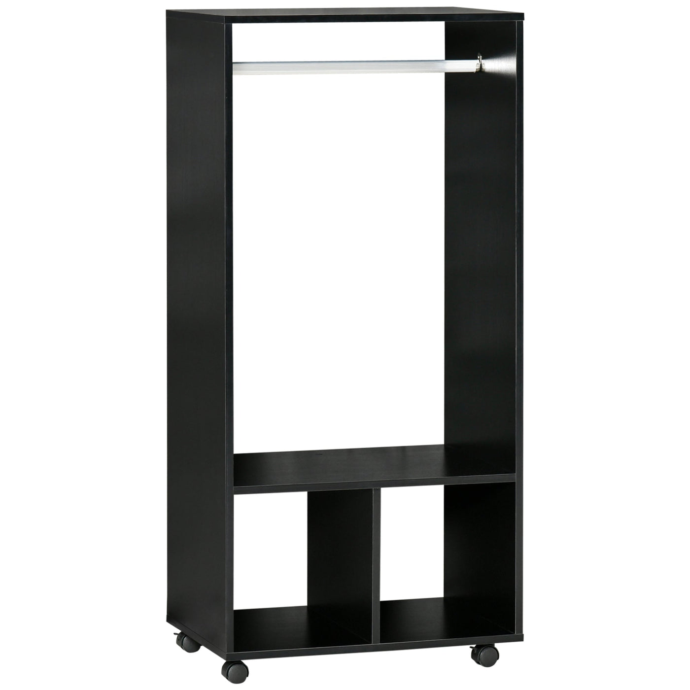 HOMCOM Open Wardrobe on Wheels, Bedroom Wardrobe with Clothes Hanging Rail, 2 Storage Shelves, Mobile Garment Rack for Cloakroom, Hallway, Black - Black