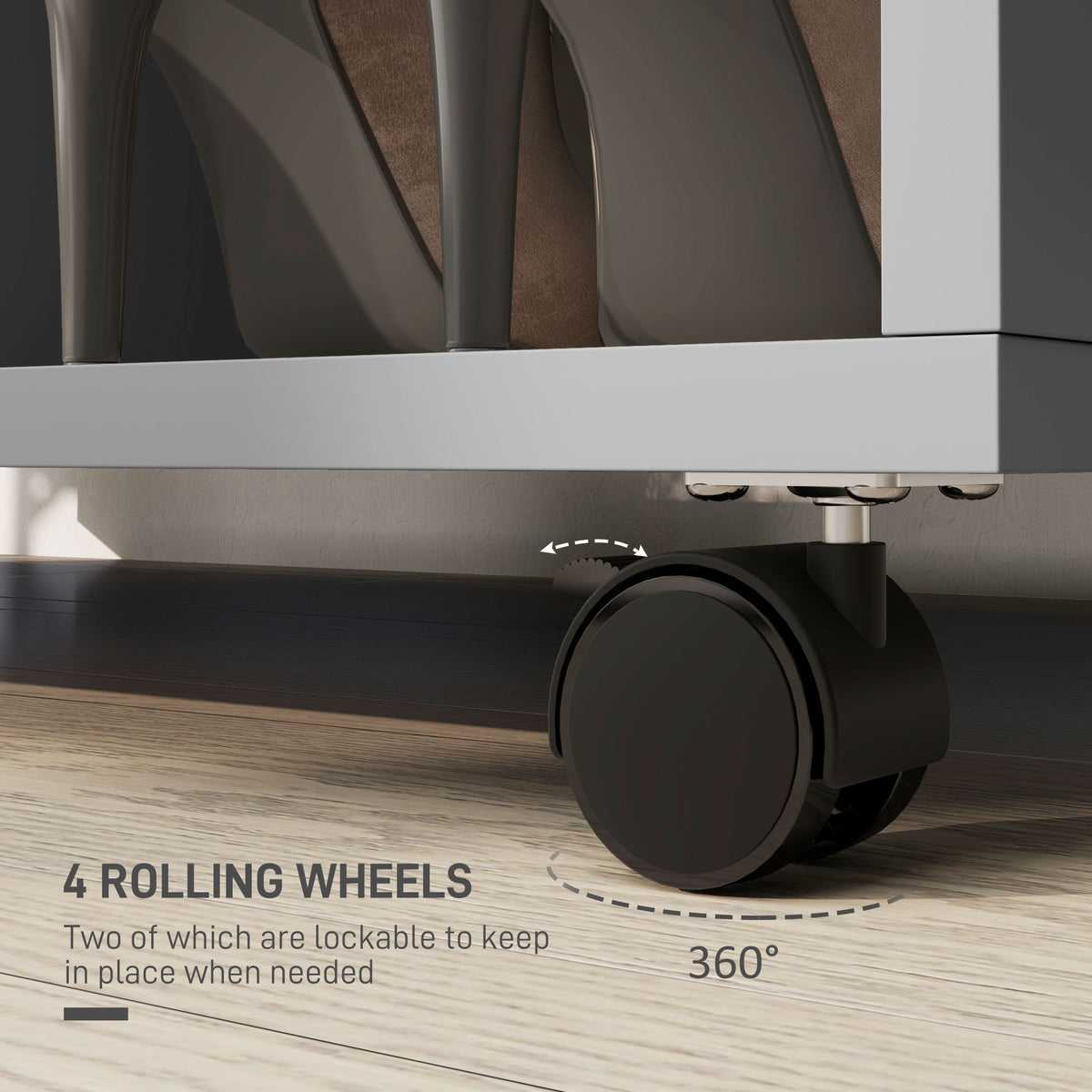 HOMCOM Open Wardrobe on Wheels, Bedroom Wardrobe with Clothes Hanging Rail, 2 Storage Shelves, Mobile Garment Rack for Cloakroom, Hallway, Grey - Grey