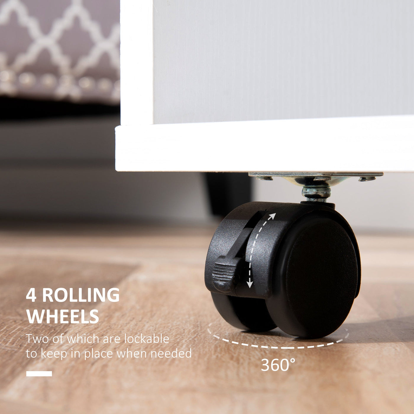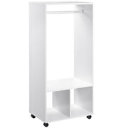 HOMCOM Open Wardrobe on Wheels, Bedroom Wardrobe with Clothes Hanging Rail, 2 Storage Shelves, Mobile Garment Rack for Cloakroom, Hallway, White - White