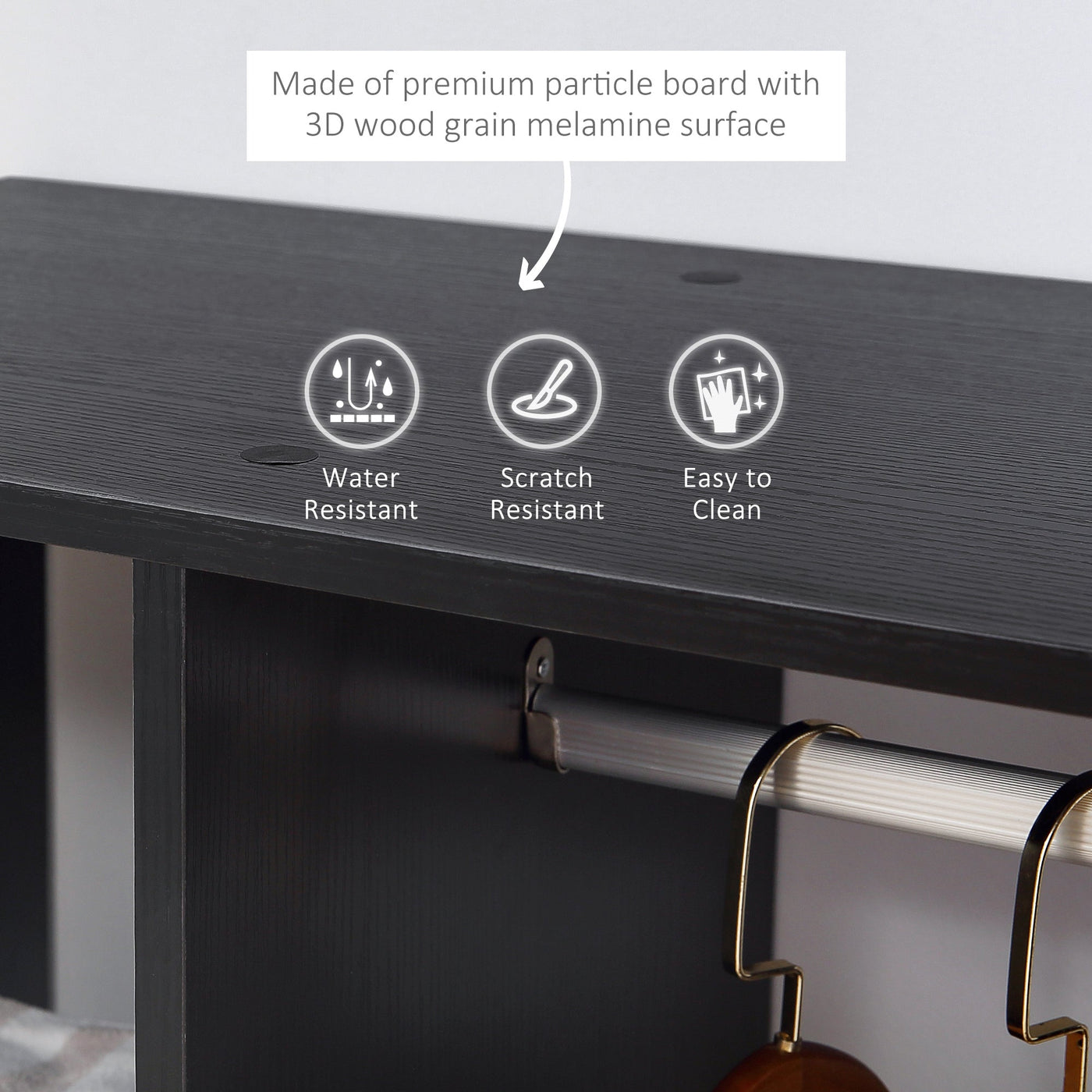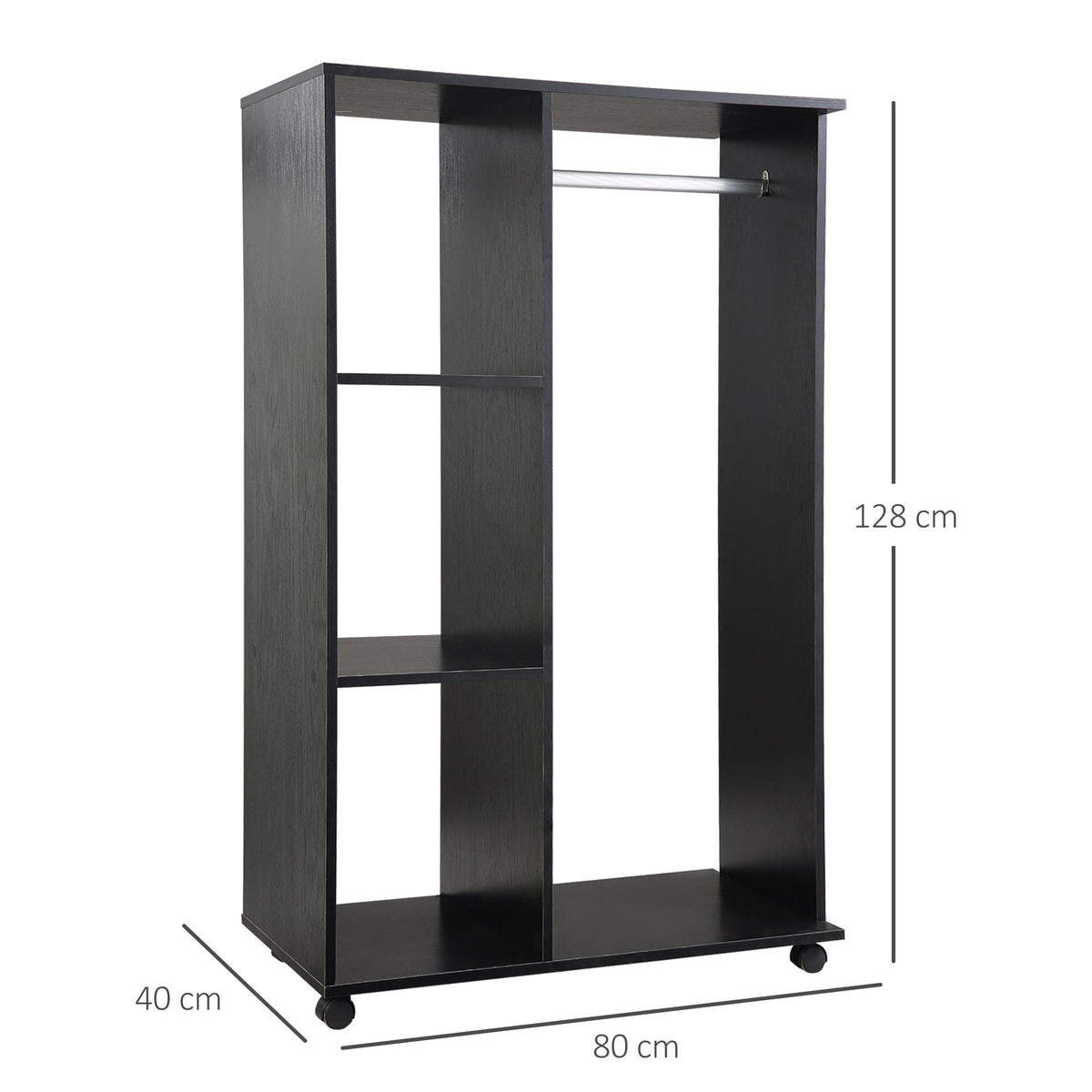 HOMCOM Open Wardrobe on Wheels, Bedroom Wardrobe with Clothes Hanging Rail, 3 Storage Shelves, Mobile Garment Rack for Cloakroom, Hallway, Black - Black