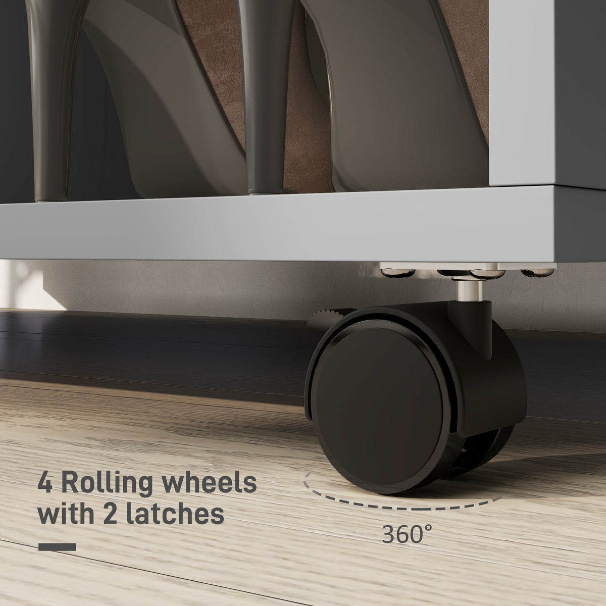 HOMCOM Open Wardrobe on Wheels, Bedroom Wardrobe with Clothes Hanging Rail, 3 Storage Shelves, Mobile Garment Rack for Cloakroom, Hallway, Grey - Grey