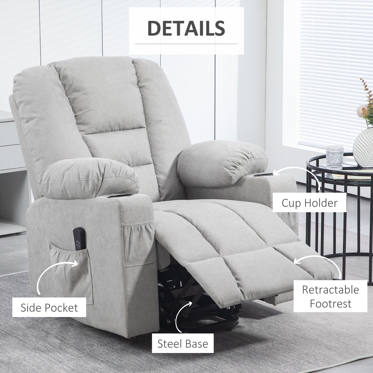 HOMCOM Oversized Riser and Recliner Chairs for the Elderly, Fabric Upholstered Lift Chair for Living Room with Remote Control, Side Pockets, Cup Holder, Light Grey - Light Grey
