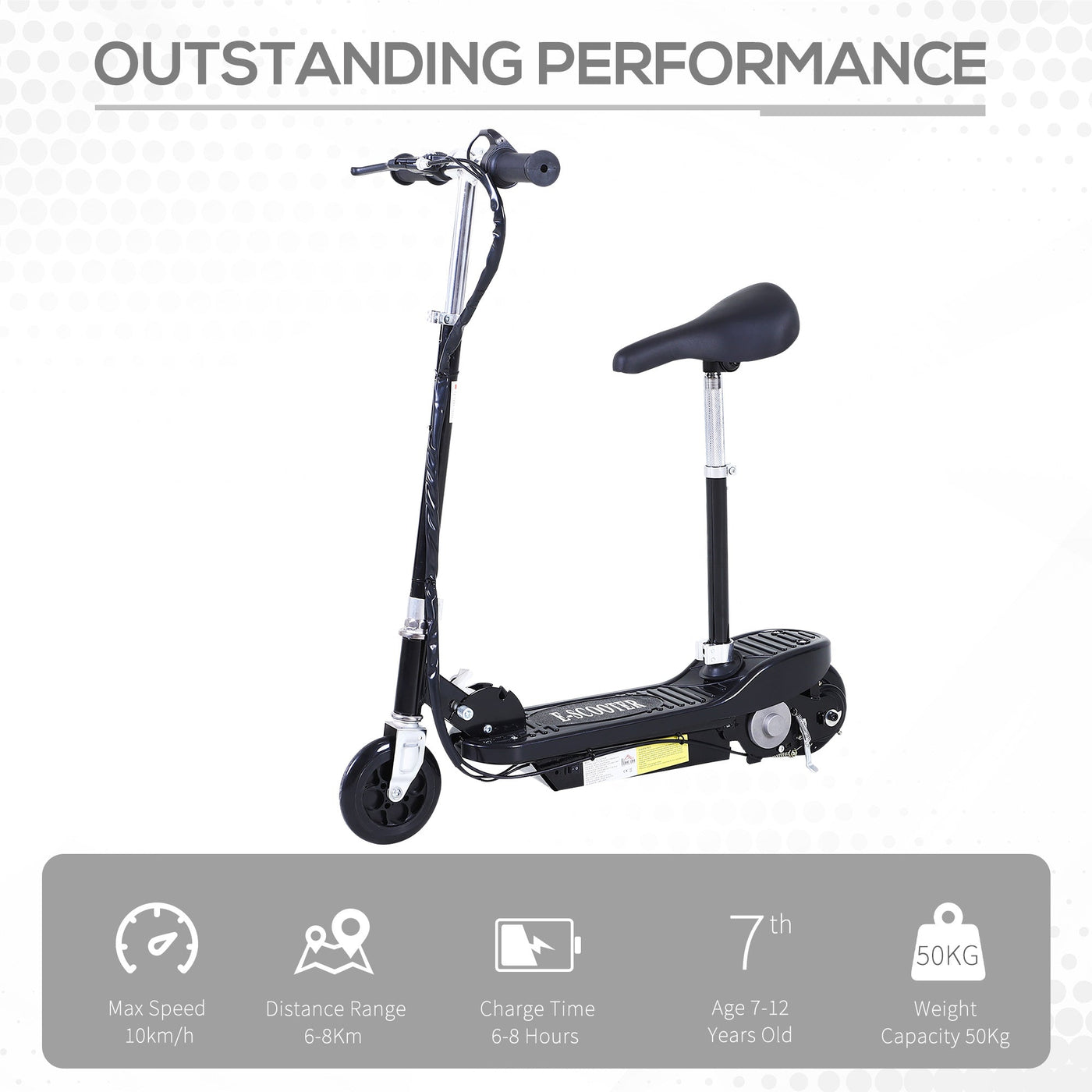 Fun and excitement await with this HOMCOM e-scooter, reaching speeds of up to 10km/h and stopping safely with reliable brakes. A full charge gives 6–8km of riding, great for daily adventures. With adjustable handlebars and seat, it grows with your child – suitable for ages 7–12 years. When the fun's over, just fold it up for compact, easy storage until the next ride!
