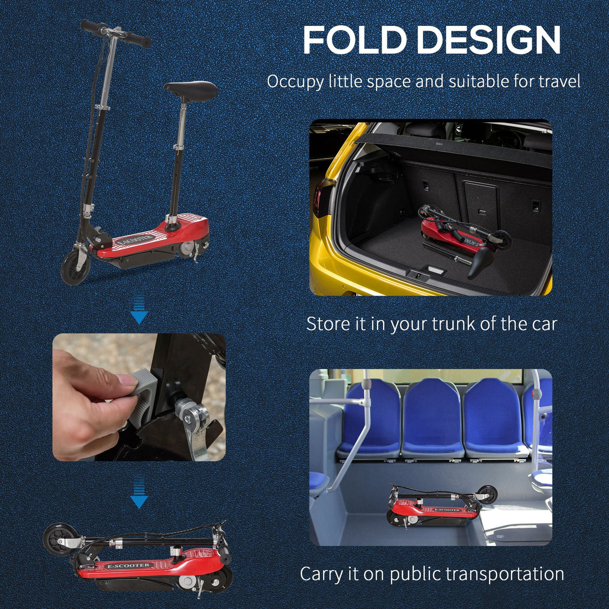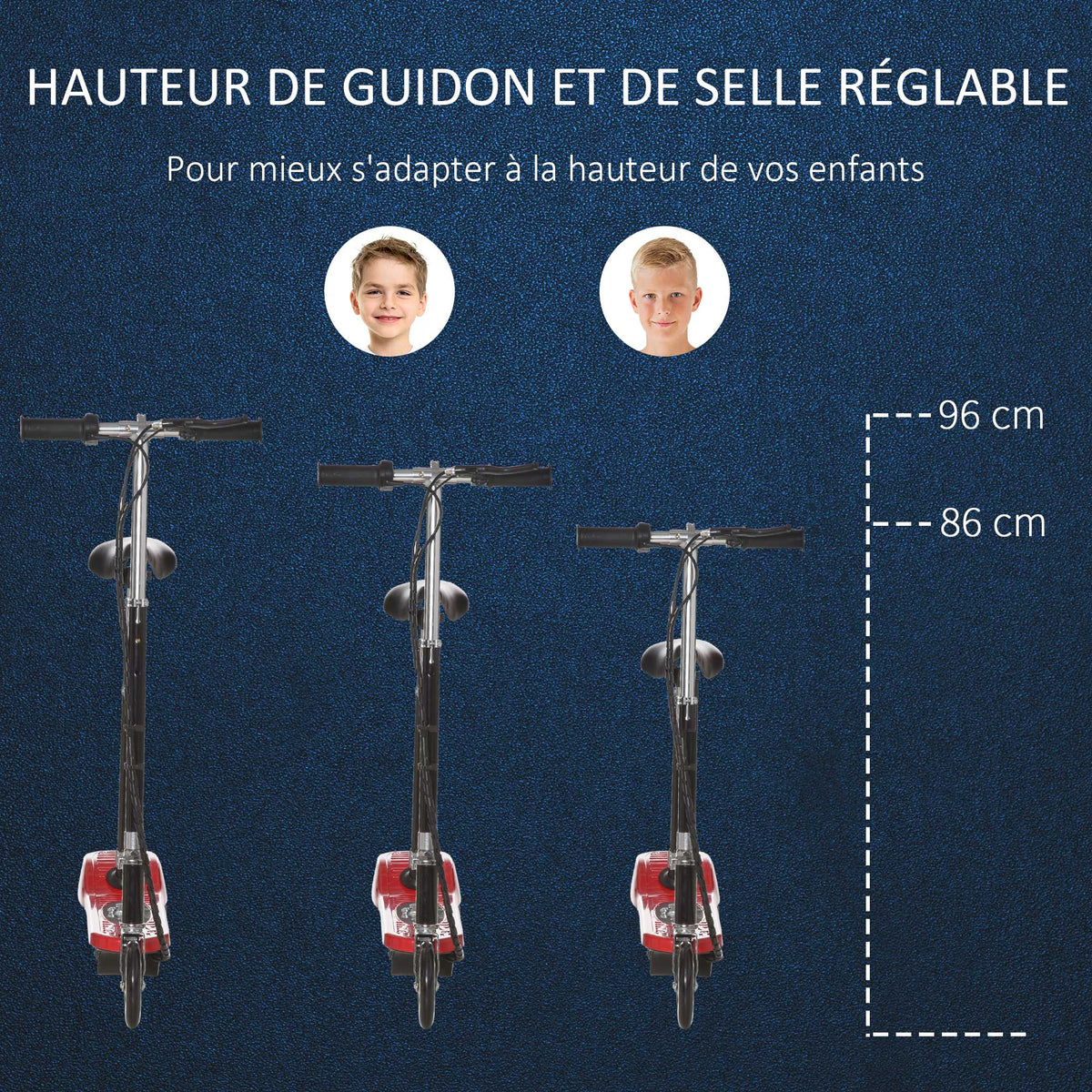 HOMCOM Powered E-Scooter Ride-On, with Brakes, Adjustable Seat, Adjustable Handlebars, Red - Red