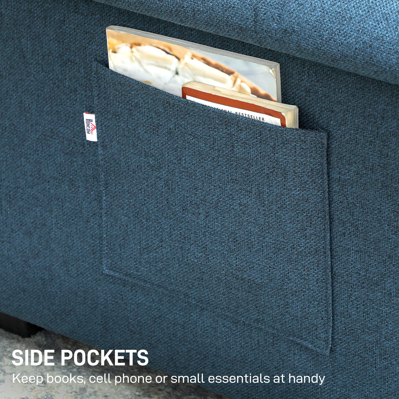 HOMCOM Pull Out Sofa Bed, Fabric 2 Seater Click Clack Sofa Bed Settee with 2 Pocket Springs, Convertible Sofa Couch with Pillows and Side Pockets for Living Room, Home Office, Blue - Blue
