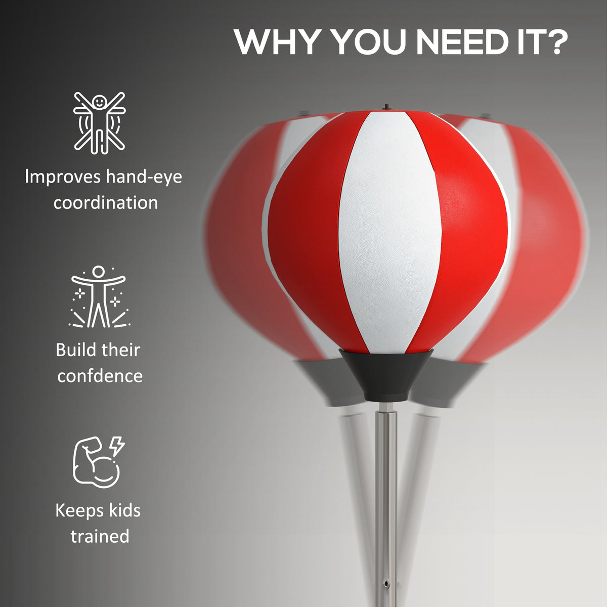 Enhance your striking skills with the HOMCOM punching bag, great for boxing, muay thai, kickboxing, taekwondo and other combat sports. You can adjust the height between 126-144cm for the right posture while striking. Fill the base with 13kg of water or sand to ensure it stays stable and upright during intense workouts. Elevate your fitness, speed and power in your chosen combat art.
