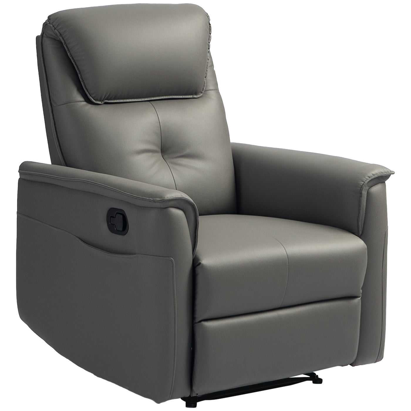 HOMCOM Recliner Armchair with Thick Padded Spring Cushion, Microfibre Manual Reclining Chair with Adjustable Leg Rest, Side Pockets for Living Room, Bedroom, Light Grey - Light Grey