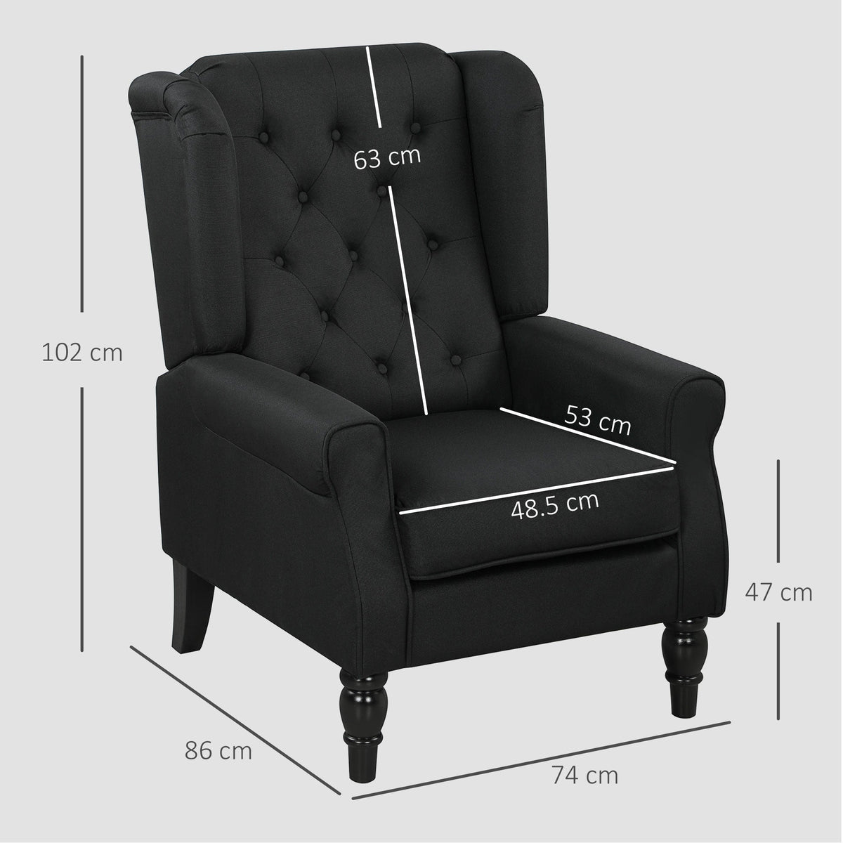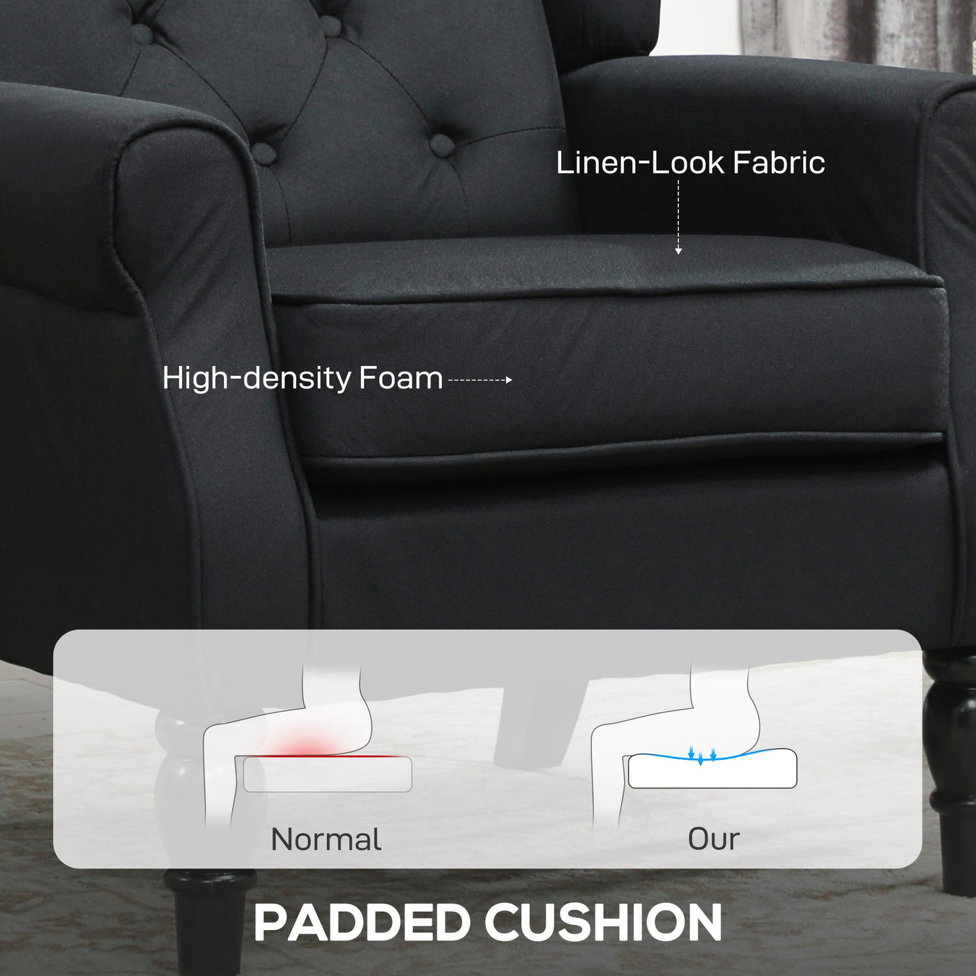 HOMCOM Retro Accent Chair, Linen Wingback Armchair with Wood Frame Button Tufted Design for Living Room Bedroom, Black - Black