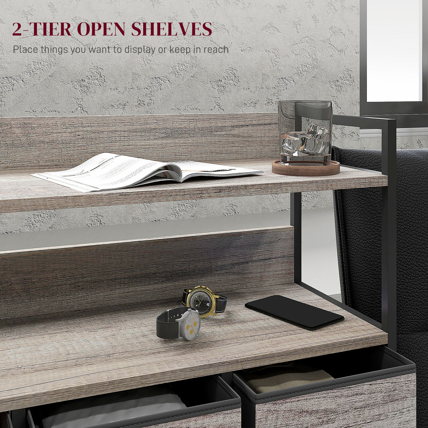 HOMCOM Rustic Chest of Seven Fabric Drawers - Grey Wood Effect