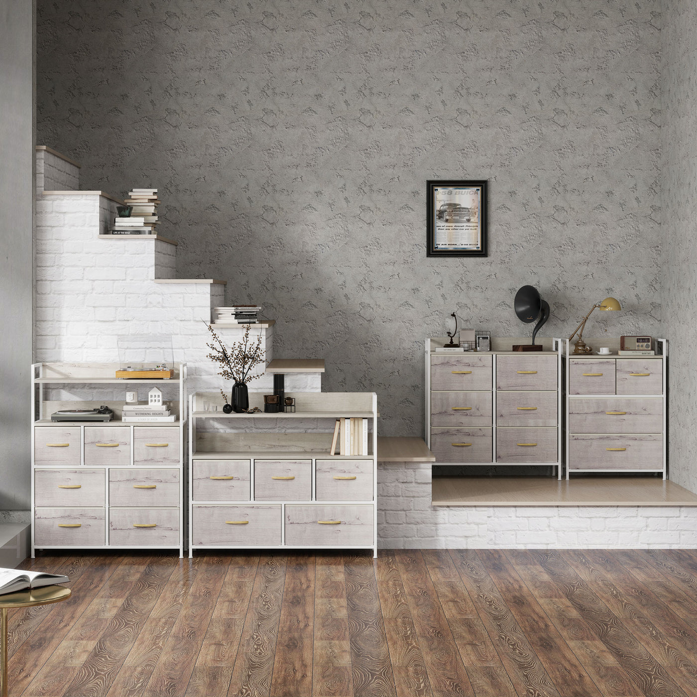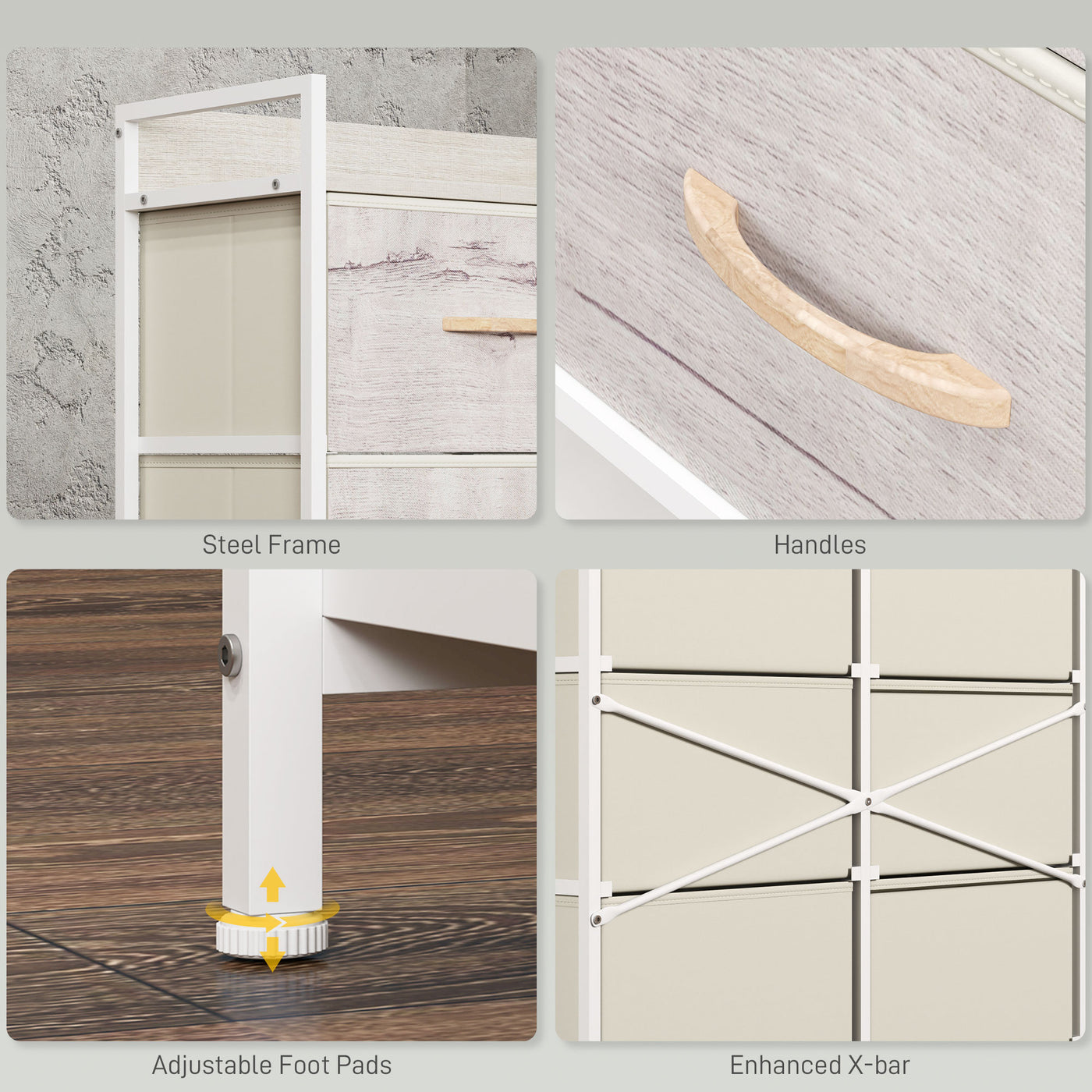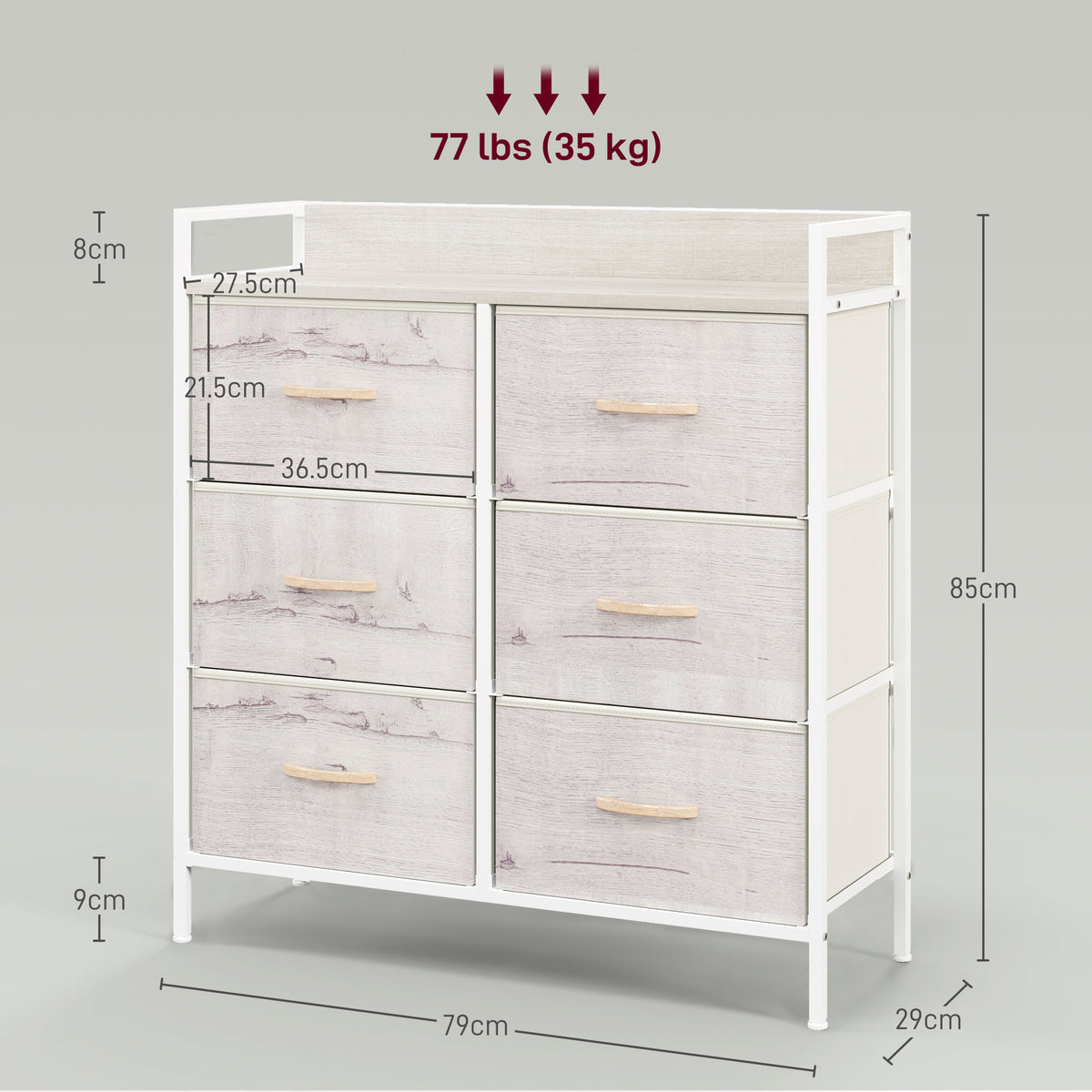 A spacious and simple approach to clothes storage, with this HOMCOM chest of drawers. It comes in industrial and rustic wood-effect design, a minimal and versatile look: it's great for plenty of different interior styles. This dresser comes with six drawers for storing and organising various garments. A powder coated steel frame for a strong core, finished with adjustable feet for balance.