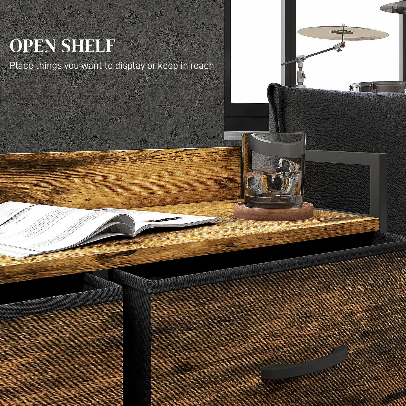 A spacious and simple approach to clothes storage, with this HOMCOM chest of drawers. It comes in industrial and rustic wood-effect design, a minimal and versatile look: it's great for plenty of different interior styles. This dresser comes with six drawers for storing and organising various garments. A powder coated steel frame for a strong core, finished with adjustable feet for balance.