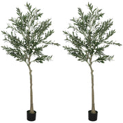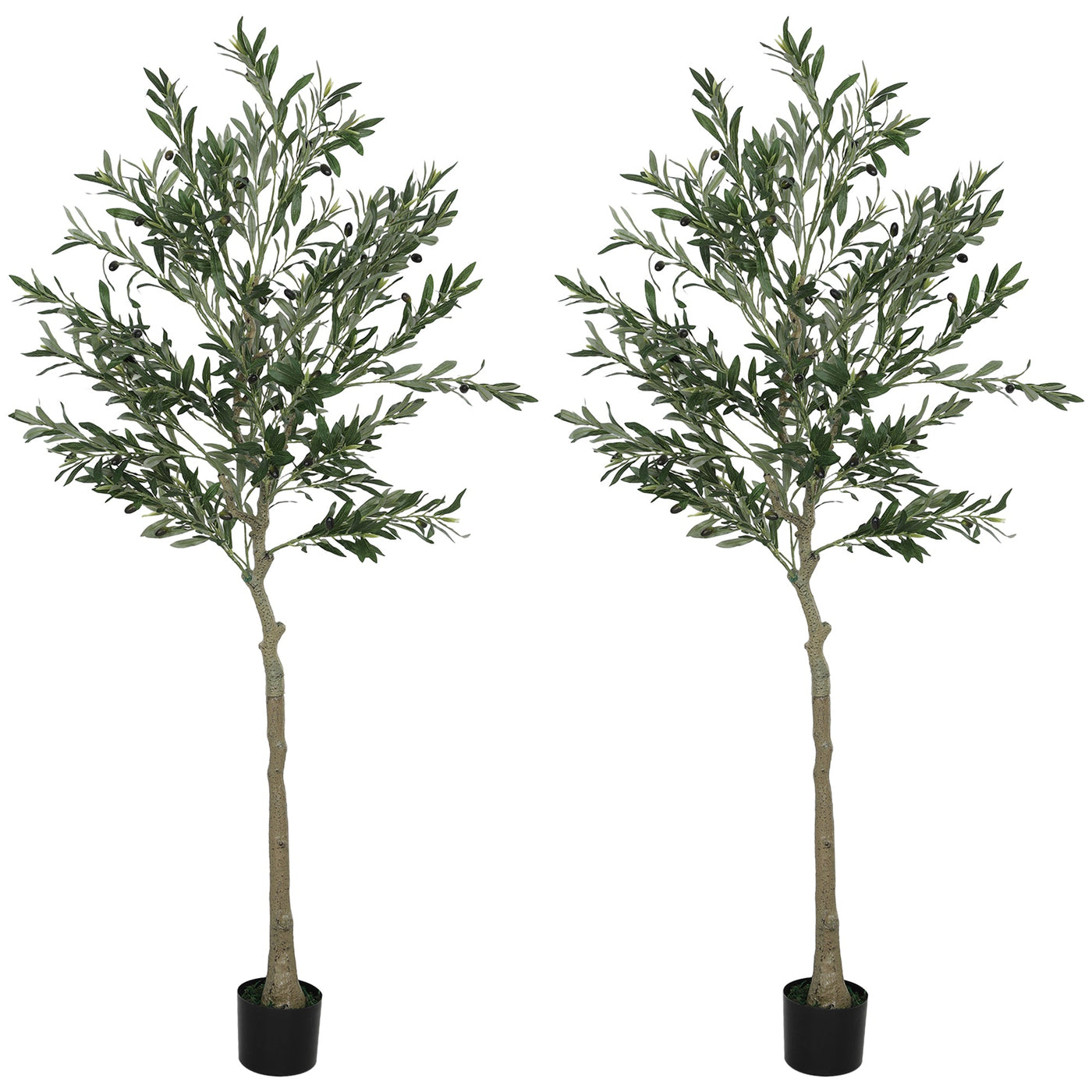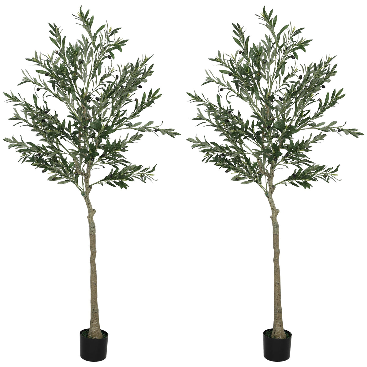 HOMCOM Set of 2 6ft/ 180cm Decorative Artificial Plant, Silk Olive Tree with 900 Leaves and 40 Olive Fruits in Pot, Fake Plant for Home, Office, Living Room, Indoor Decor - Green