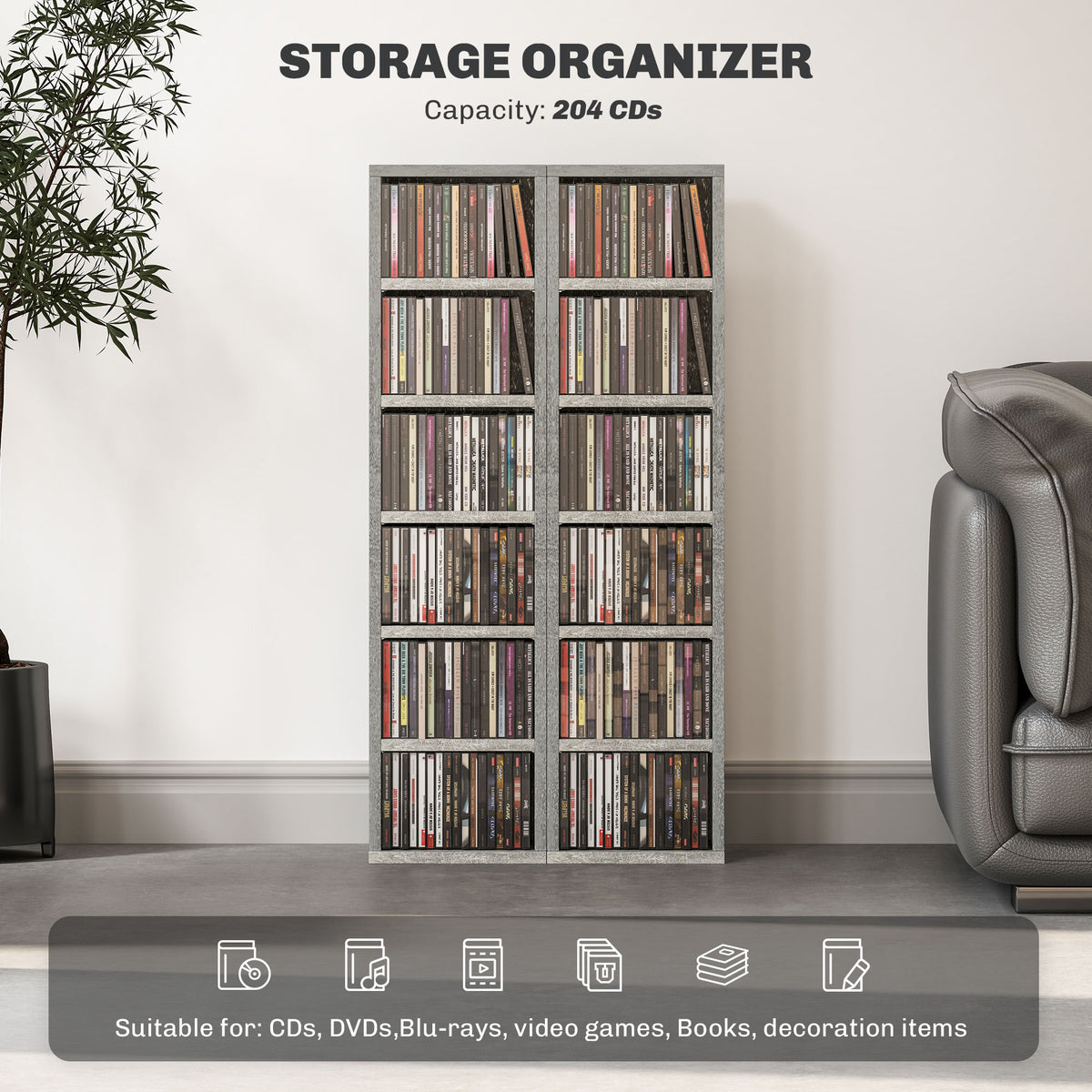 Display your coveted CD and digital media collection with pride - opt for this set of two shelves from HOMCOM. A six-compartment design, each unit can hold up to 102 CDs, giving you plenty of room for keeping everything together in a place. Made from particle board, the structure is solid and comes with wall fixing straps on the back, so it doesn't fall over - making it safe for all homes. Double the organization for a tidy and matching home.