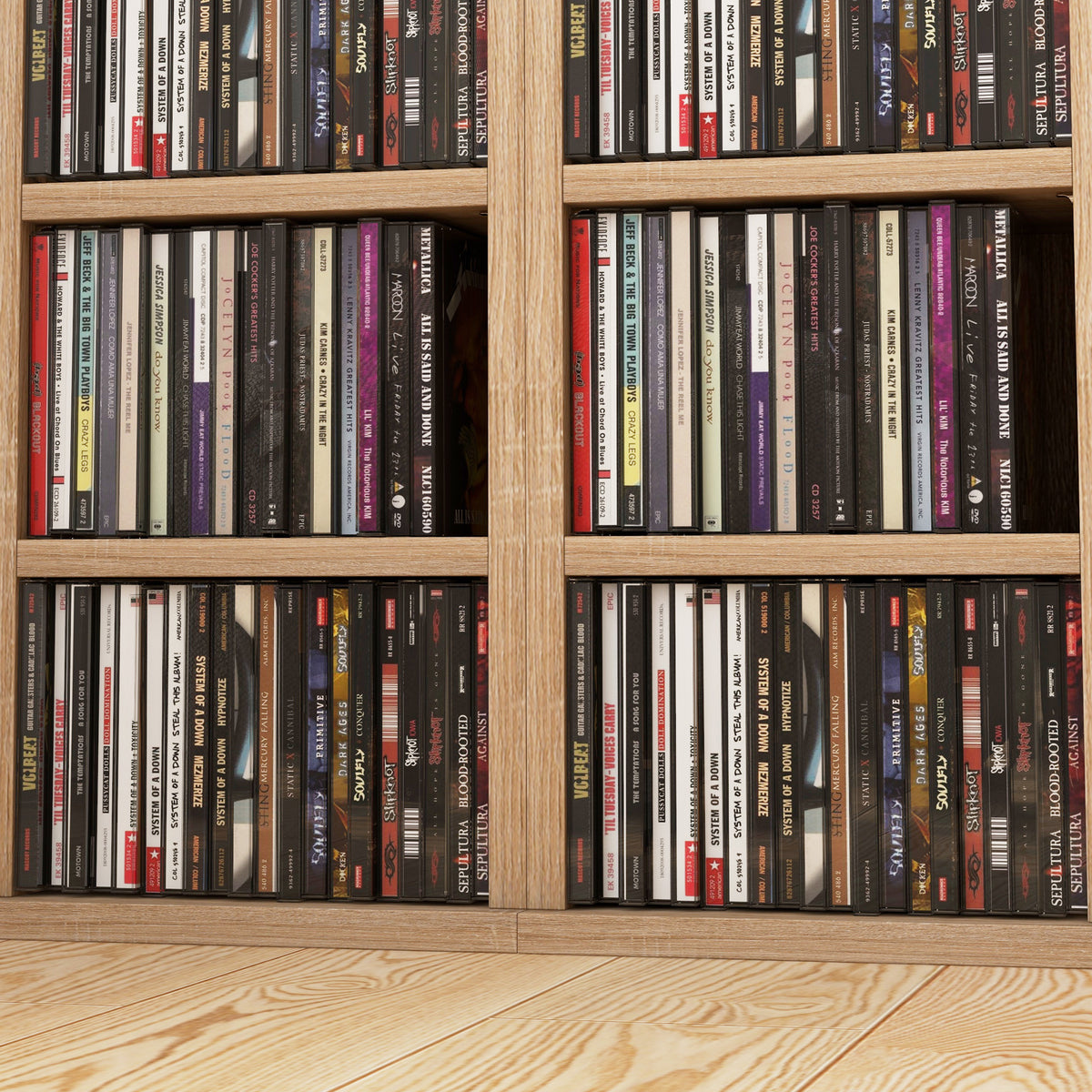 HOMCOM Set of Two 102 CD Storage Units - Wood-Effect - Natural Wood Finish