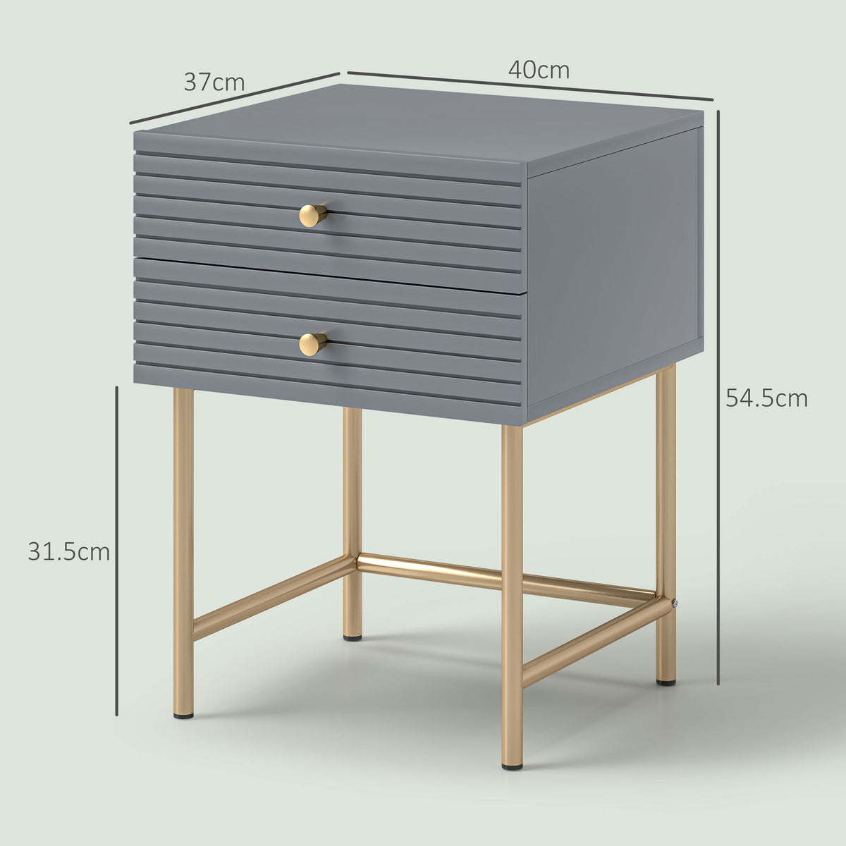 HOMCOM Set of Two Elegant Bedside Tables - Grey/Gold-Tone - Grey