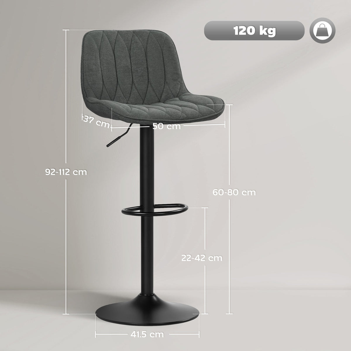 HOMCOM Set of Two Linen-Look Bar Stools - Charcoal Grey - Charcoal grey