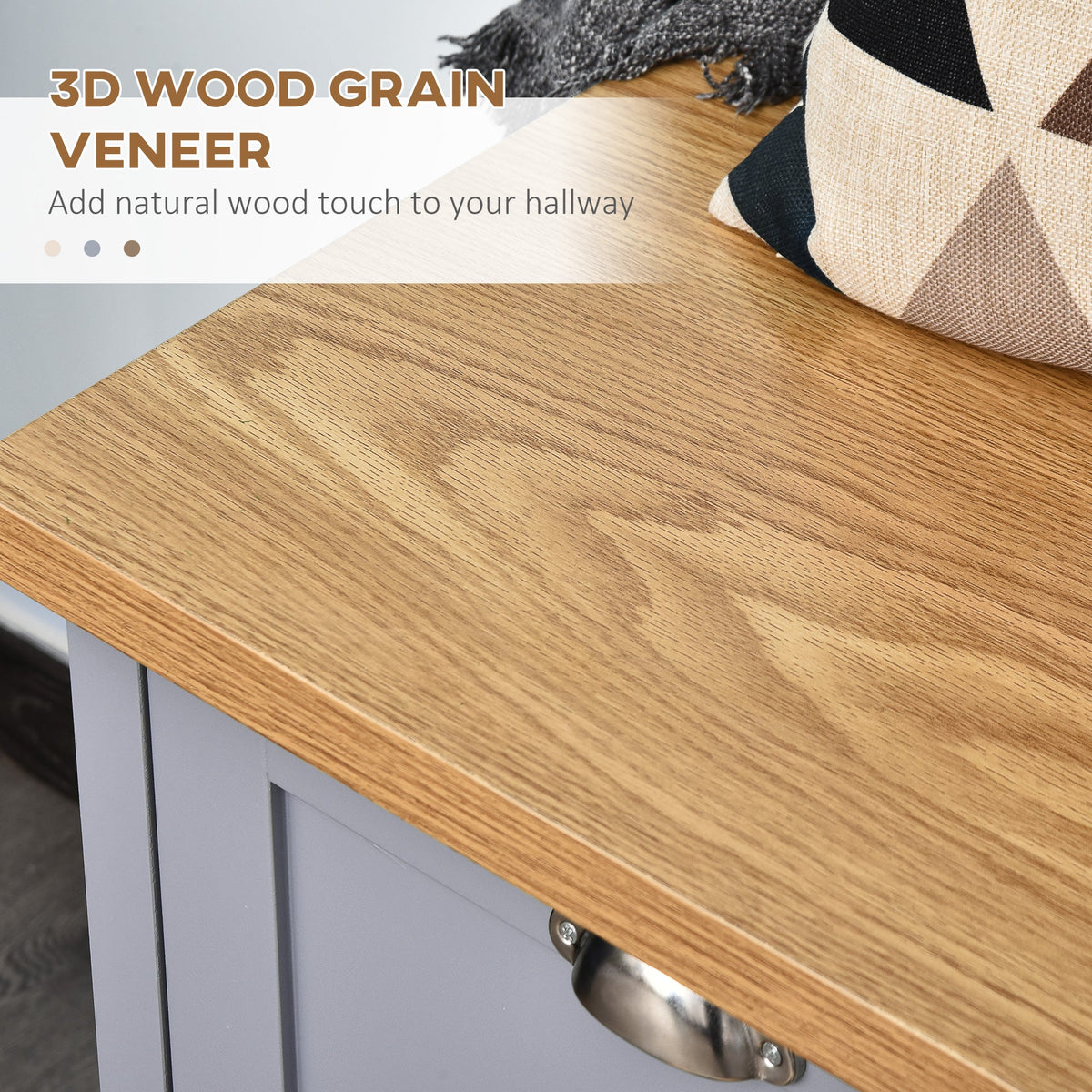 Bring modern style to your home with natural wood finish on a space-saving shoe bench by HOMCOM. Two cabinets with fixed inner shelf for storing shoes, while the bench top functions as both a seat and a countertop for purses, bags, and hats. Say goodbye to bending and stooping when it's time to tie your shoes. Made of MDF frame with painted surface, this hallway storage unit can be a sturdy enough place to sit. Get organized. Make your house a home with HOMCOM.
