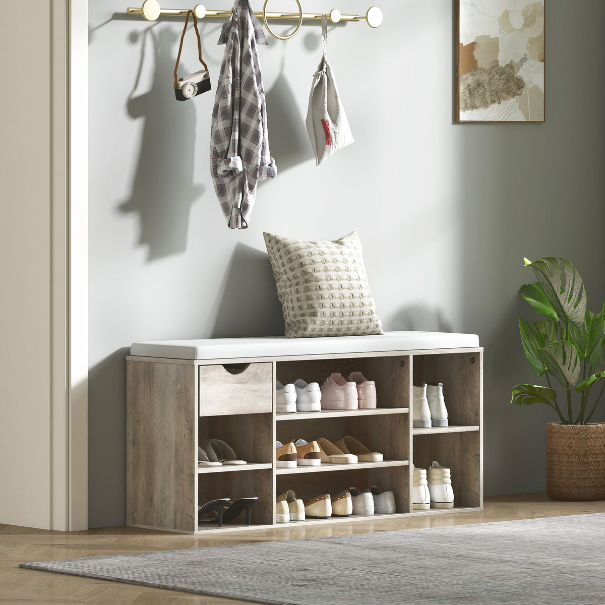 HOMCOM Shoe Storage Bench with Cushion - Grey - Grey
