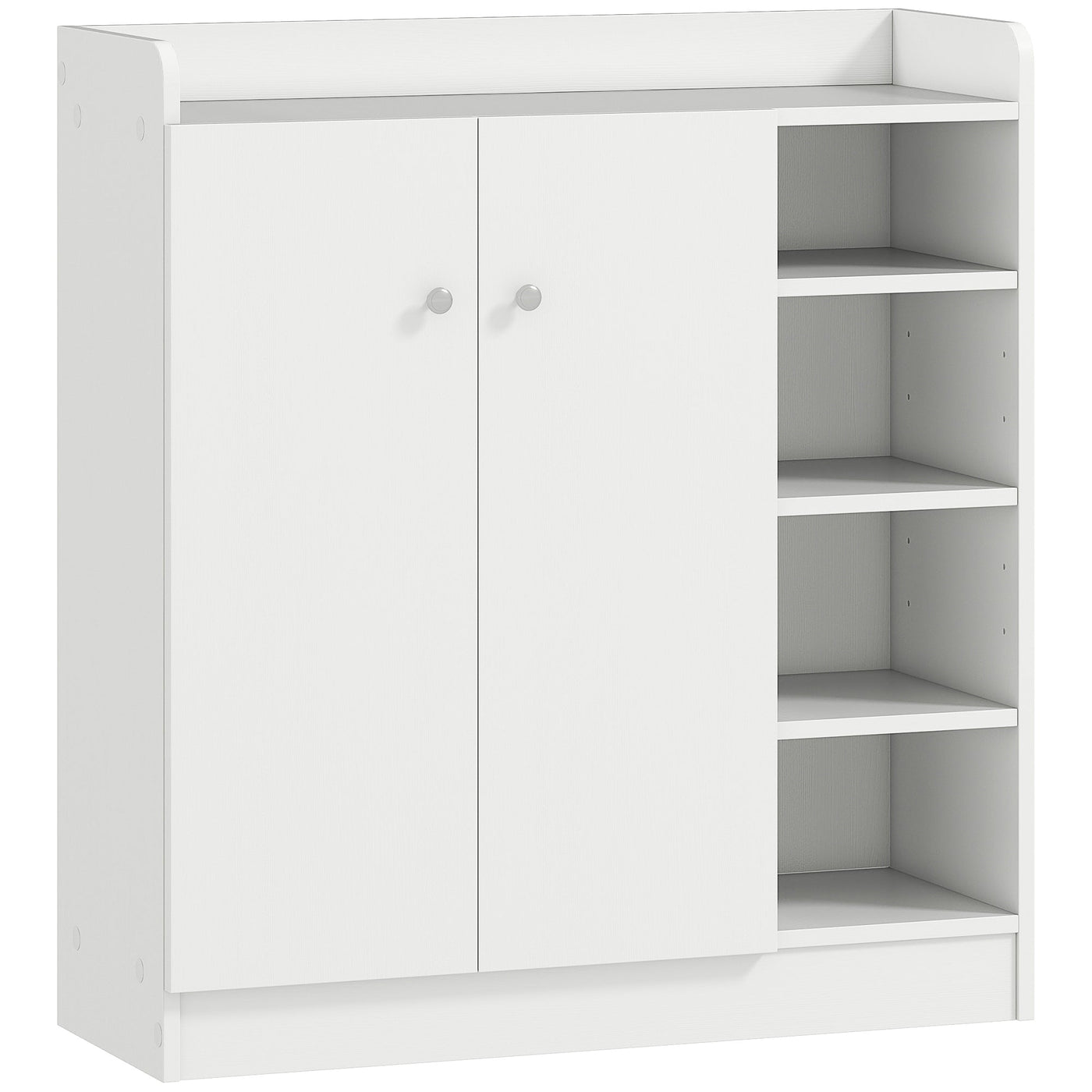 HOMCOM Shoe Storage Cabinet Two Doors w/ Adjustable 4 Shelves Cupboard Footwear Rack Stand Organiser Hallway White - White
