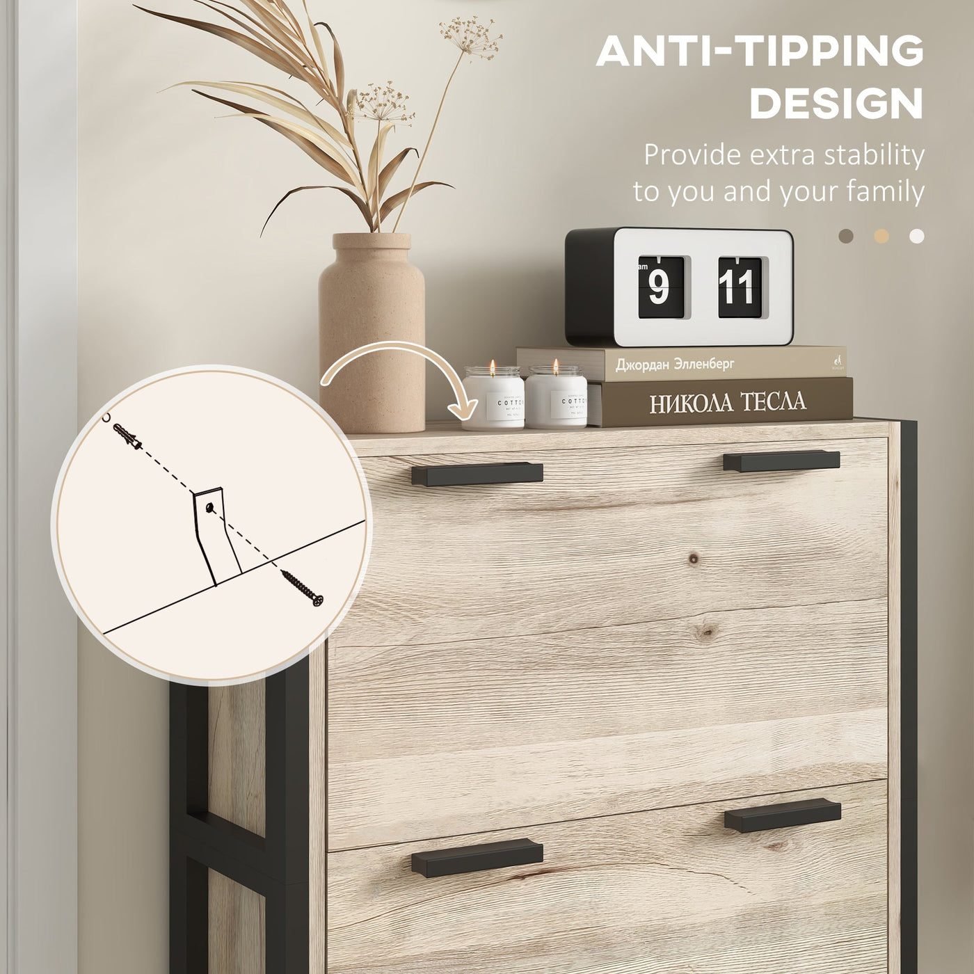 HOMCOM Shoe Storage Cabinet with 3 Flip Drawers Adjustable Shelf 18 Pairs Narrow Shoe Cupboard for Entryway Natural Wood-effect - Natural wood finish