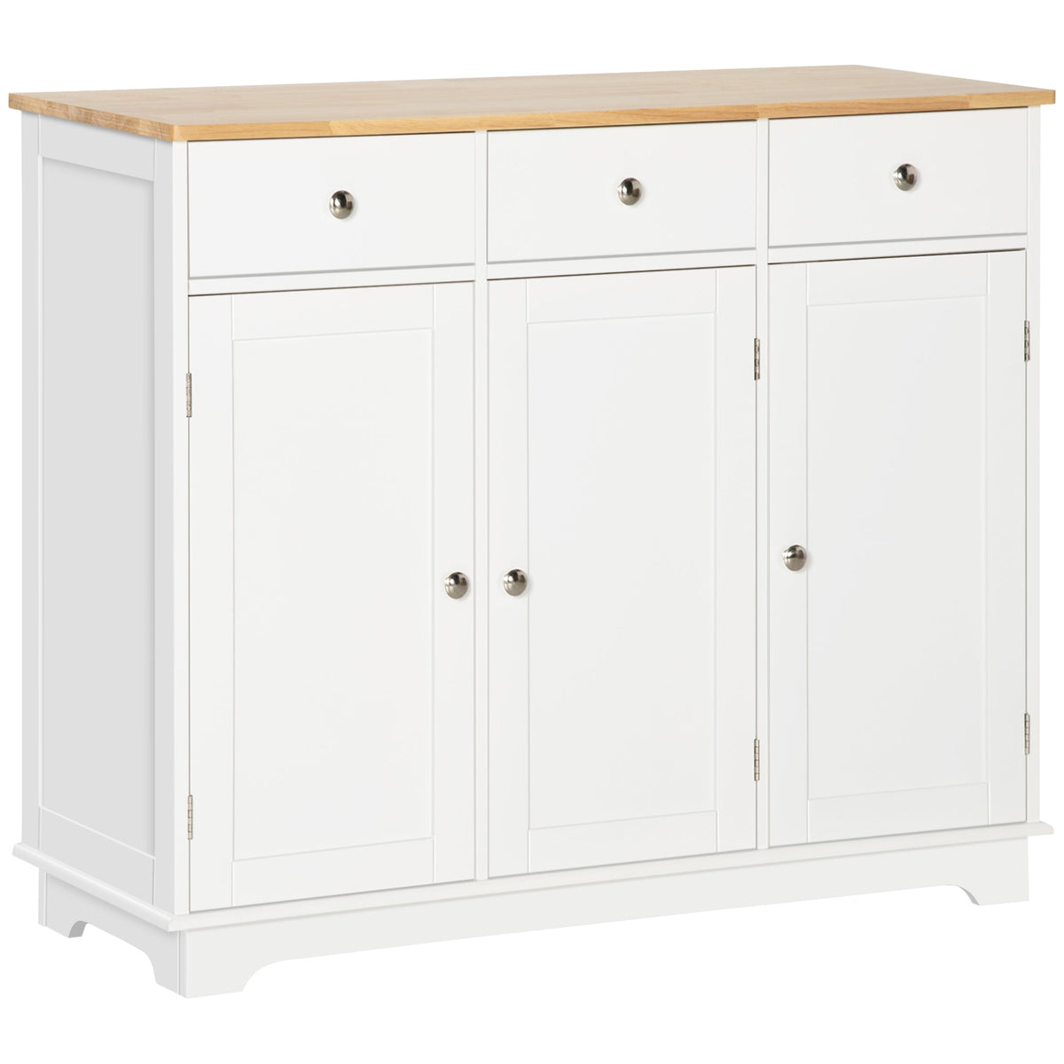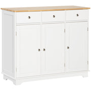 HOMCOM Sideboard with Rubber Wood Top, Modern Storage Cabinet, Kitchen Cupboard with 3 Doors, 3 Drawers and 3 Adjustable Shelves for Dining Room, Living Room, White - White