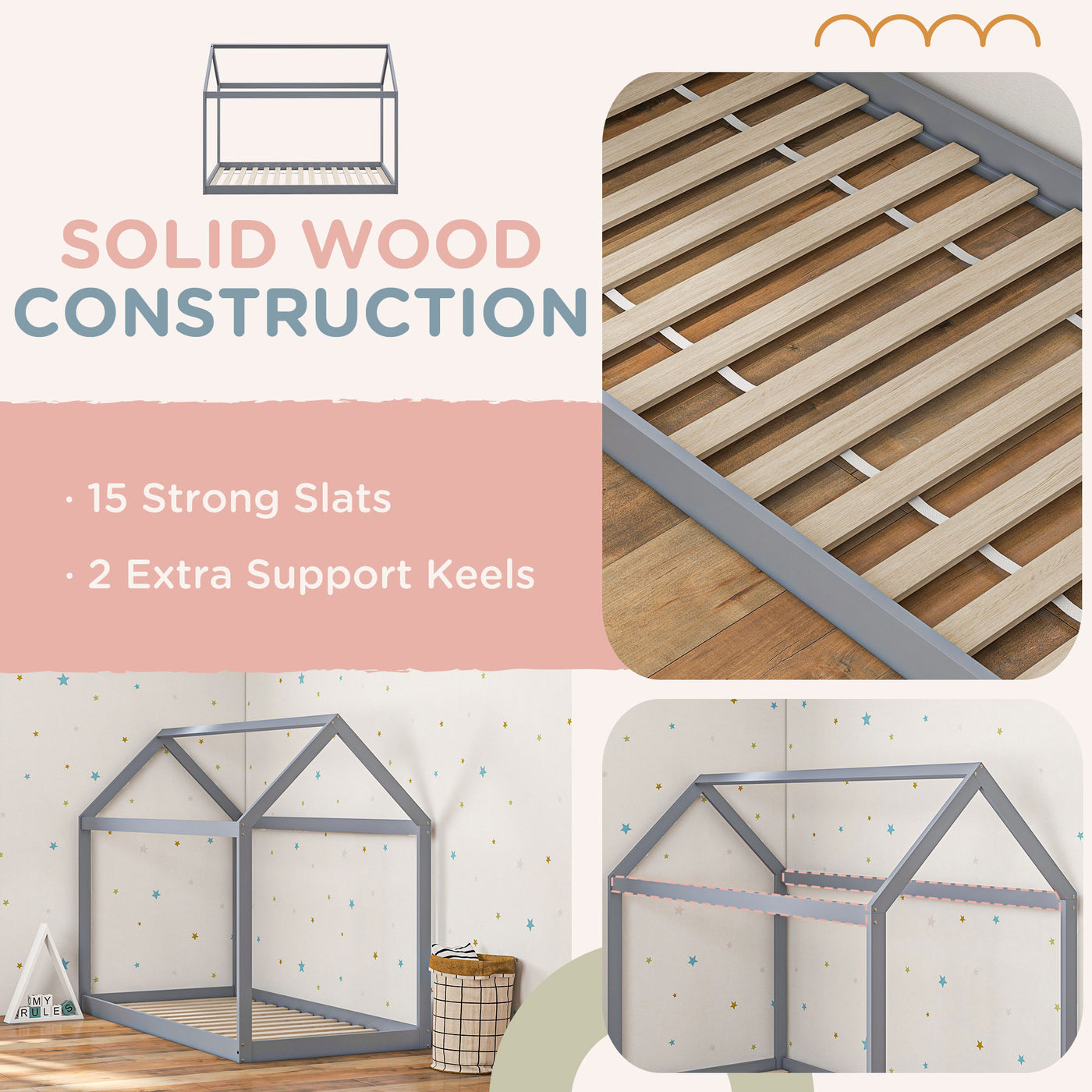 HOMCOM Single Bed Frame, House Scandinavian Style Wooden Bed Frame for 90W x 190Dcm Mattress, Pine Wood Bed Base, Grey - Grey