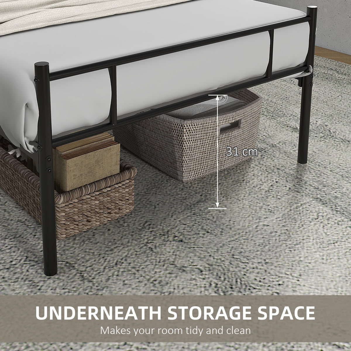 HOMCOM Single Metal Bed Frame Solid Bedstead Base with Headboard and Footboard, Metal Slat Support and Underbed Storage Space, Bedroom Furniture, Black - Black